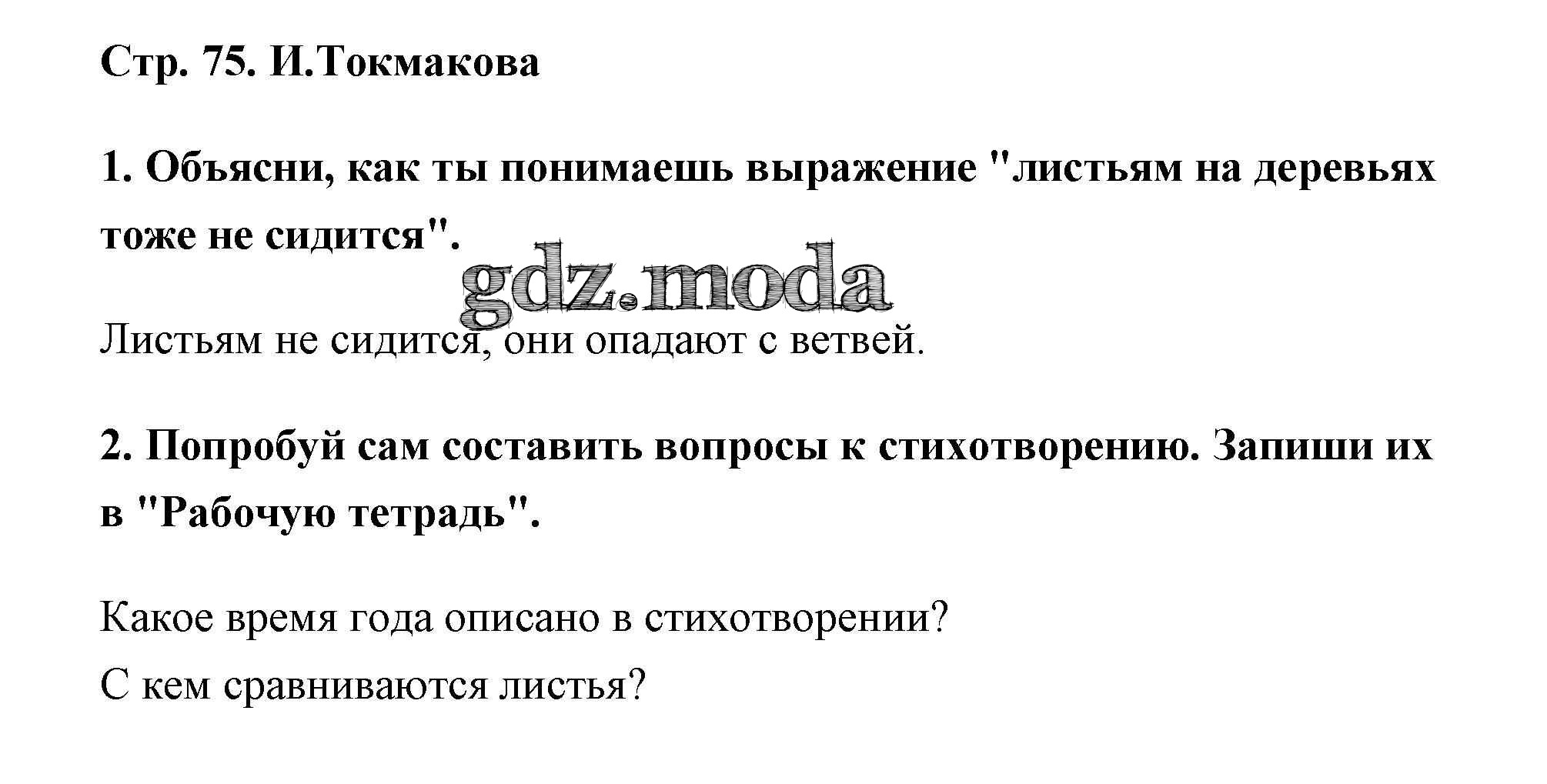 ГДЗ решение к заданию № 75 Литературное чтение 2 класс Климанова Просвещение 2018 Часть 1, Часть 2 ФГОС бесплатно на гдз.мода!