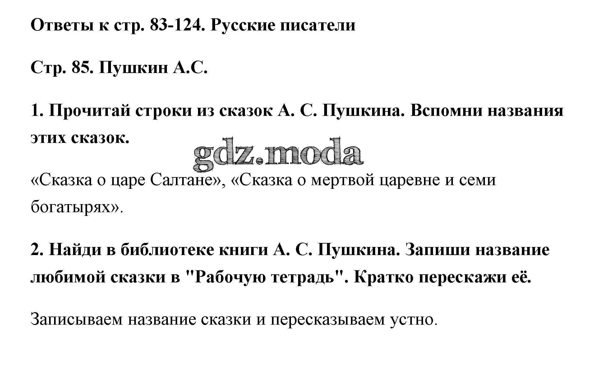 ГДЗ решение к заданию № 85 Литературное чтение 2 класс Климанова Просвещение 2018 Часть 1, Часть 2 ФГОС бесплатно на гдз.мода!