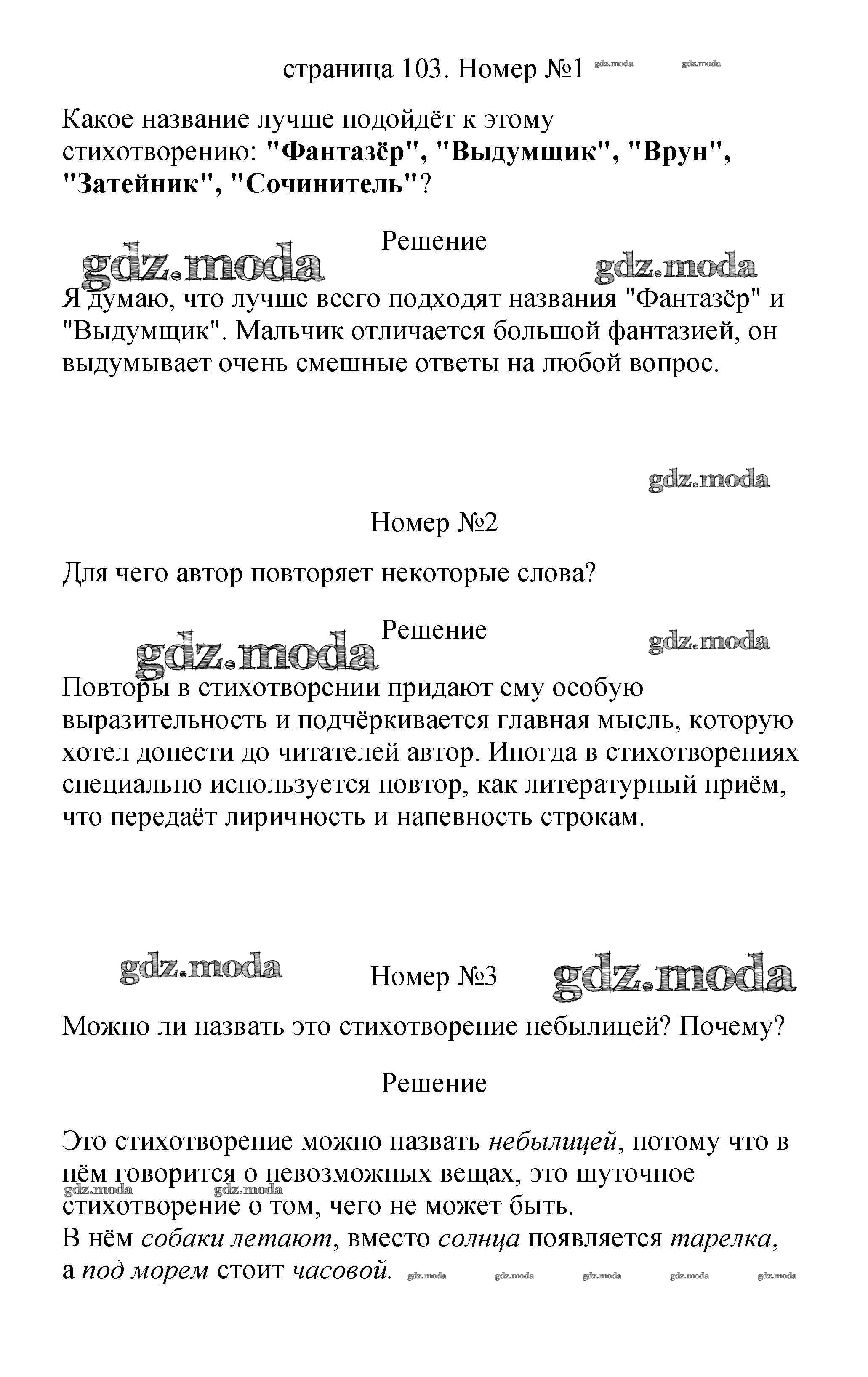 ОТВЕТ на задание № 103 Учебник по Литературе 2 класс Климанова Школа России