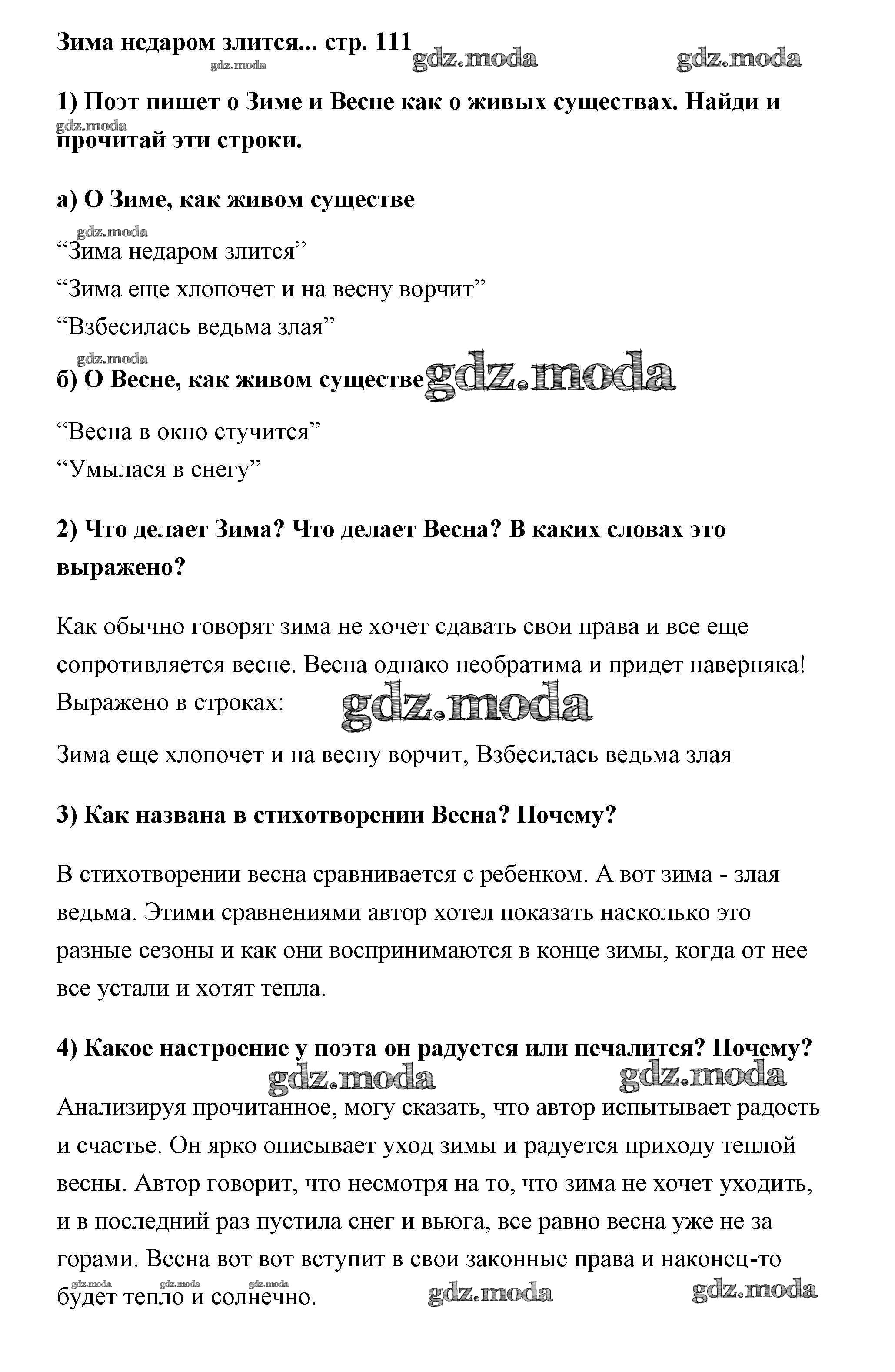 ОТВЕТ на задание № 111 Учебник по Литературе 2 класс Климанова Школа России