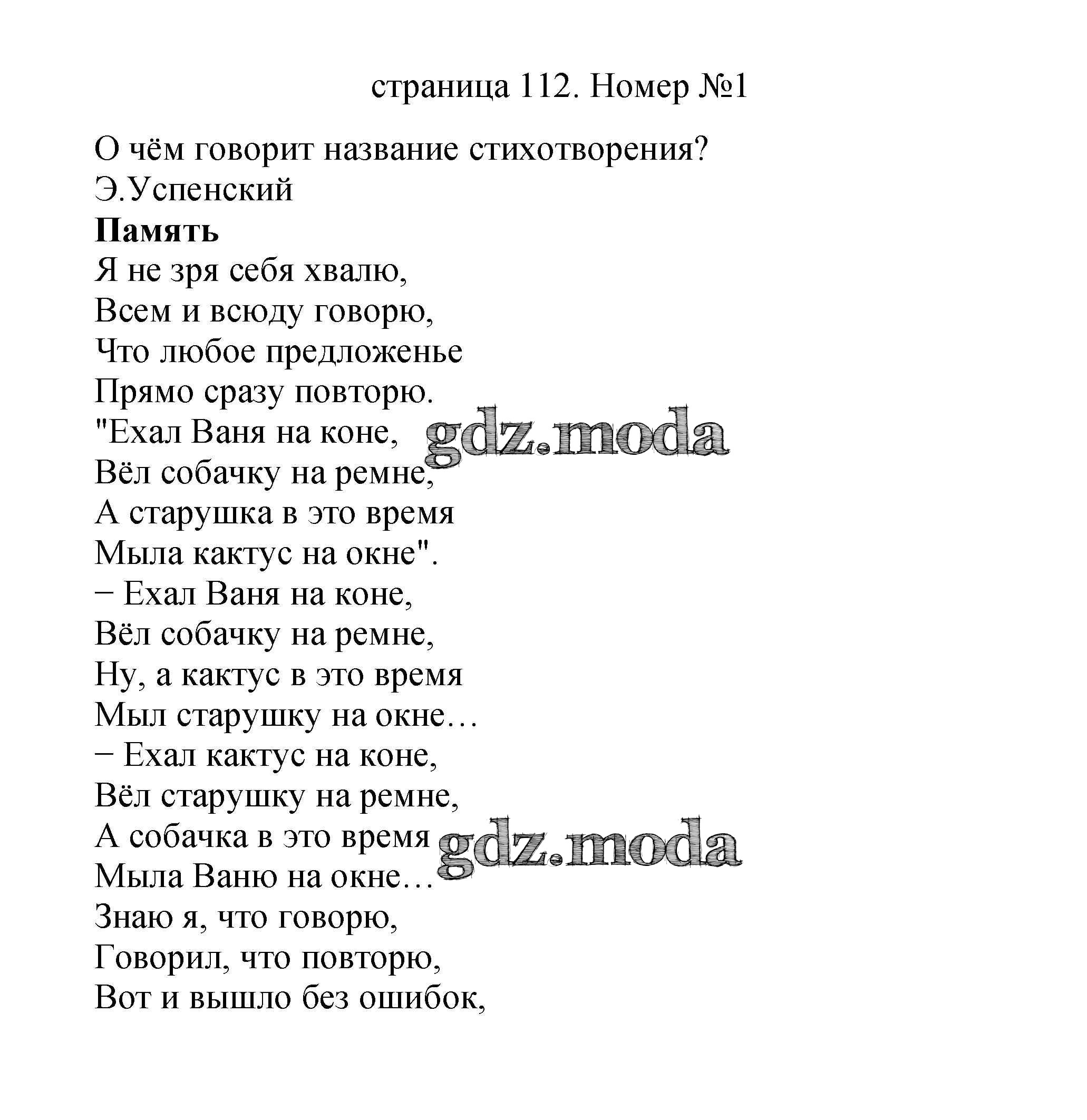 ОТВЕТ на задание № 112 Учебник по Литературе 2 класс Климанова Школа России