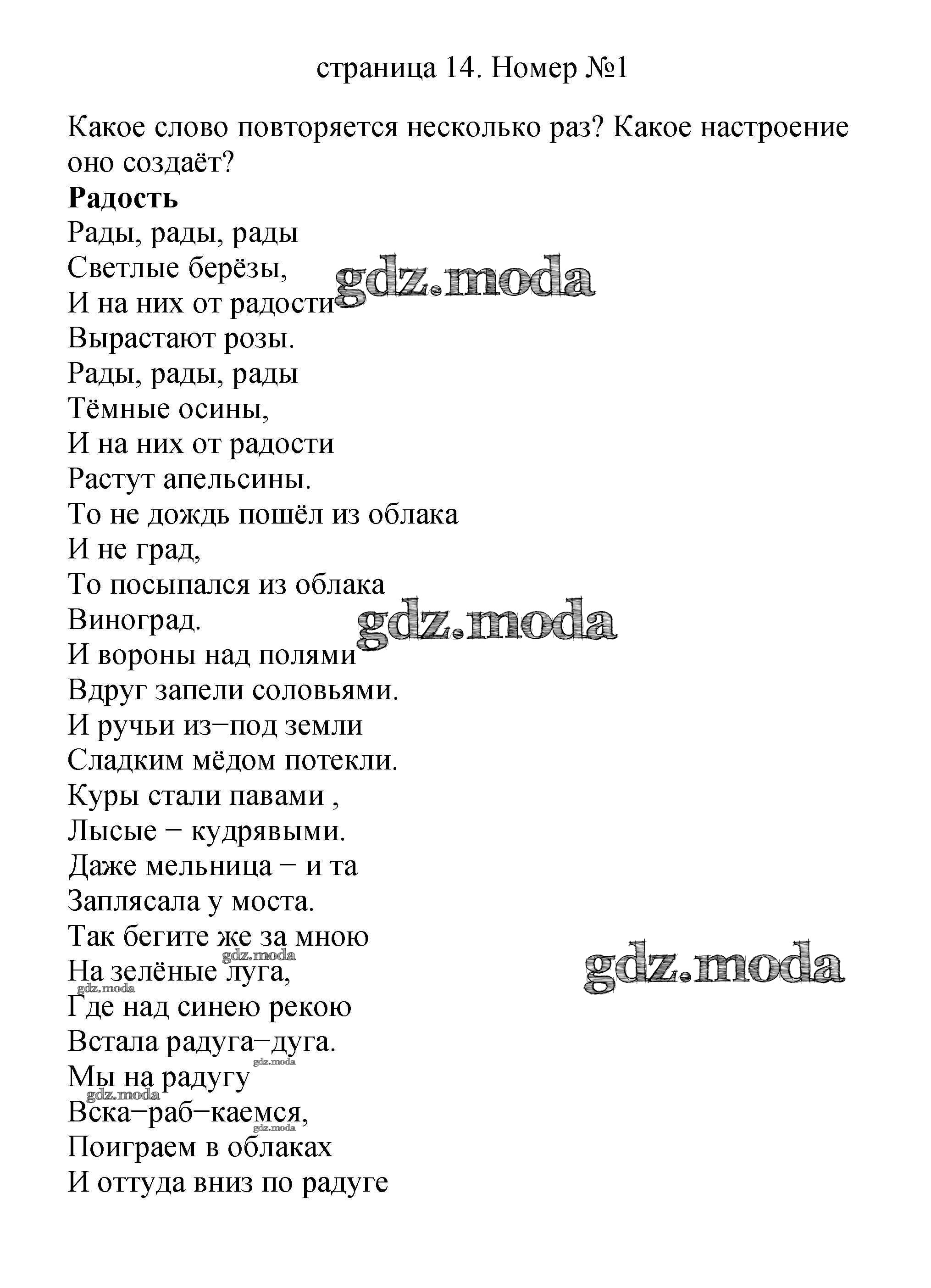 ГДЗ решение к заданию № 14 Литературное чтение 2 класс Климанова Просвещение 2018 Часть 1, Часть 2 ФГОС бесплатно на гдз.мода!