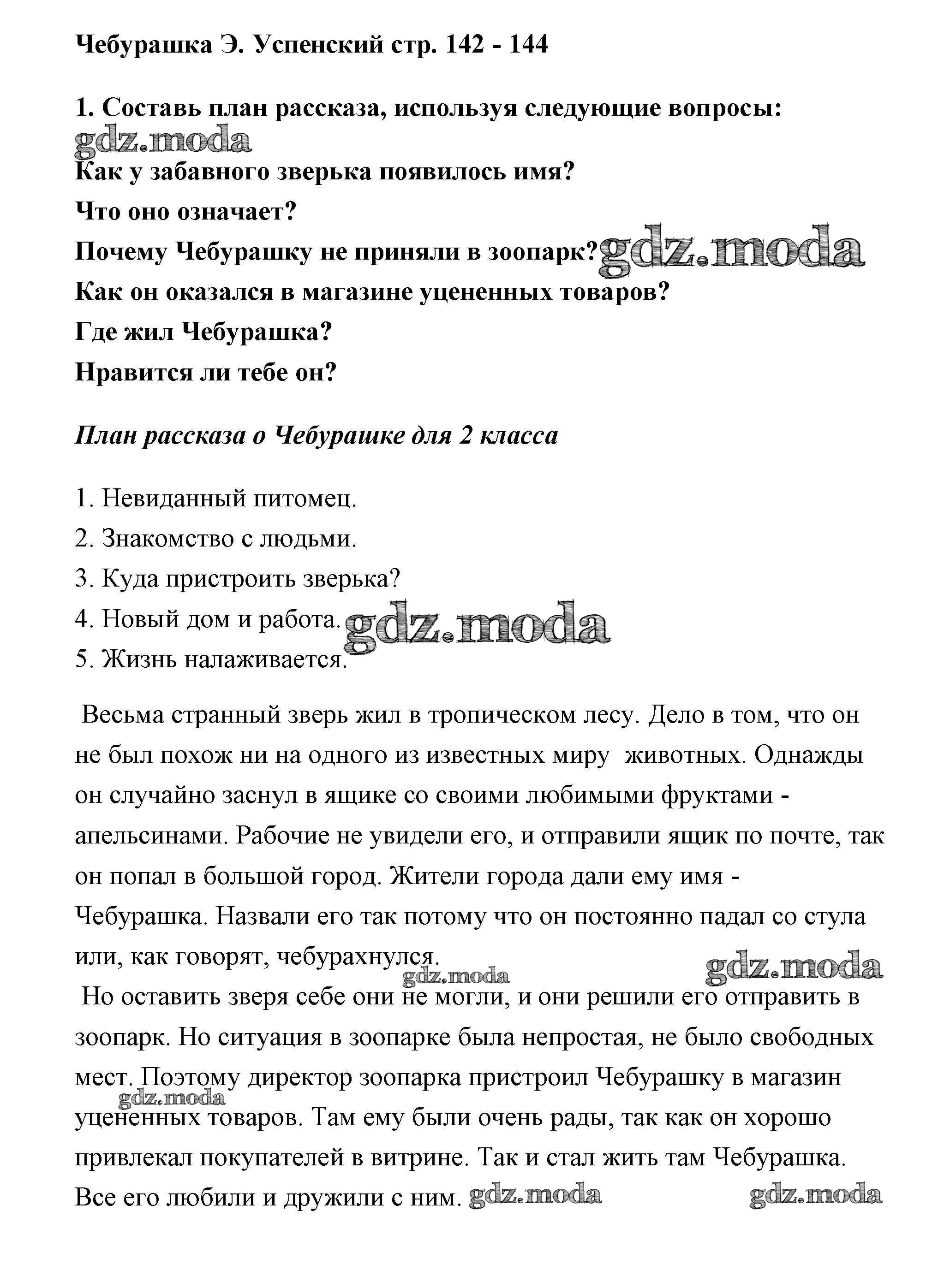 ОТВЕТ на задание № 142-144 Учебник по Литературе 2 класс Климанова Школа России