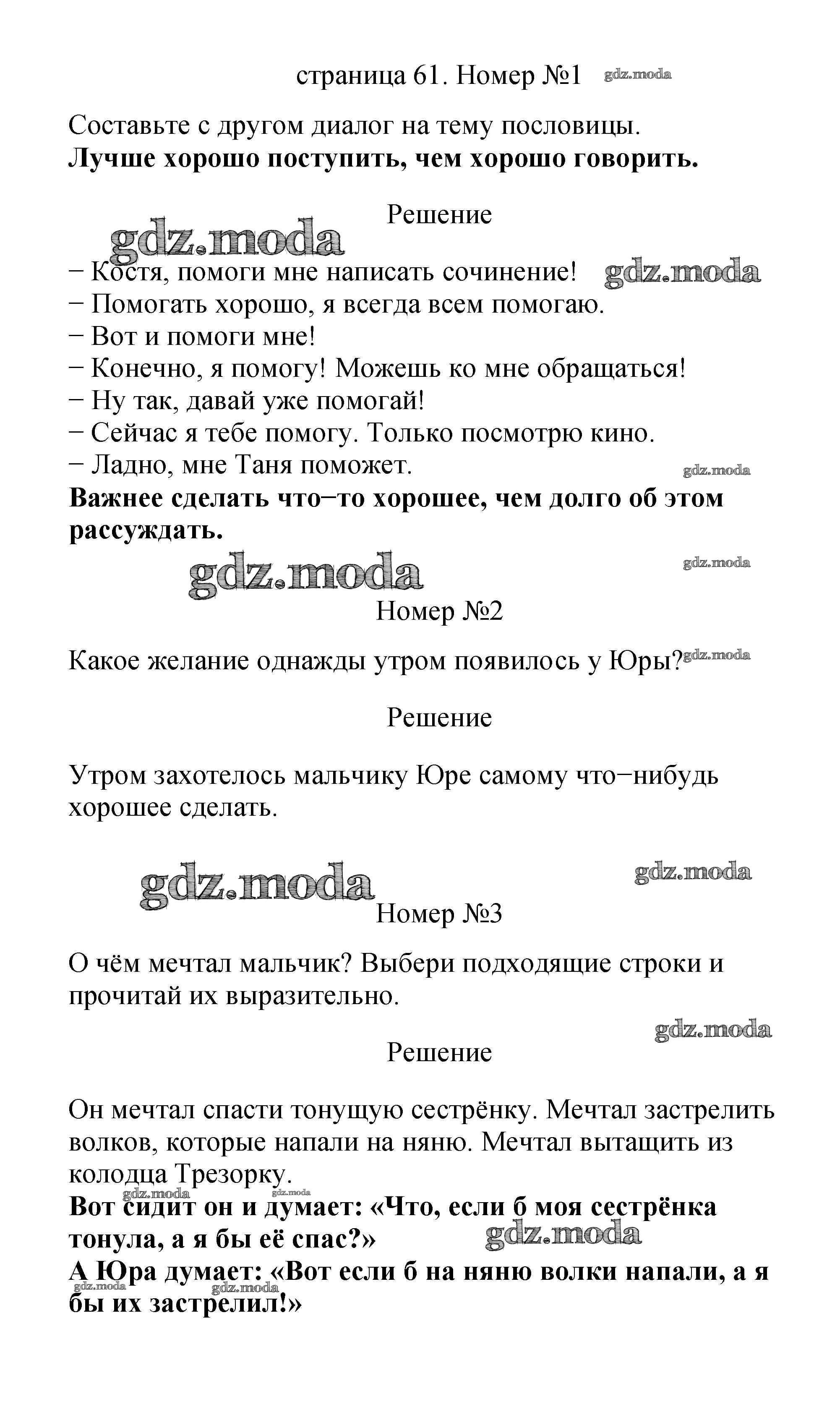 ГДЗ решение к заданию № 61 Литературное чтение 2 класс Климанова Просвещение 2018 Часть 1, Часть 2 ФГОС бесплатно на гдз.мода!