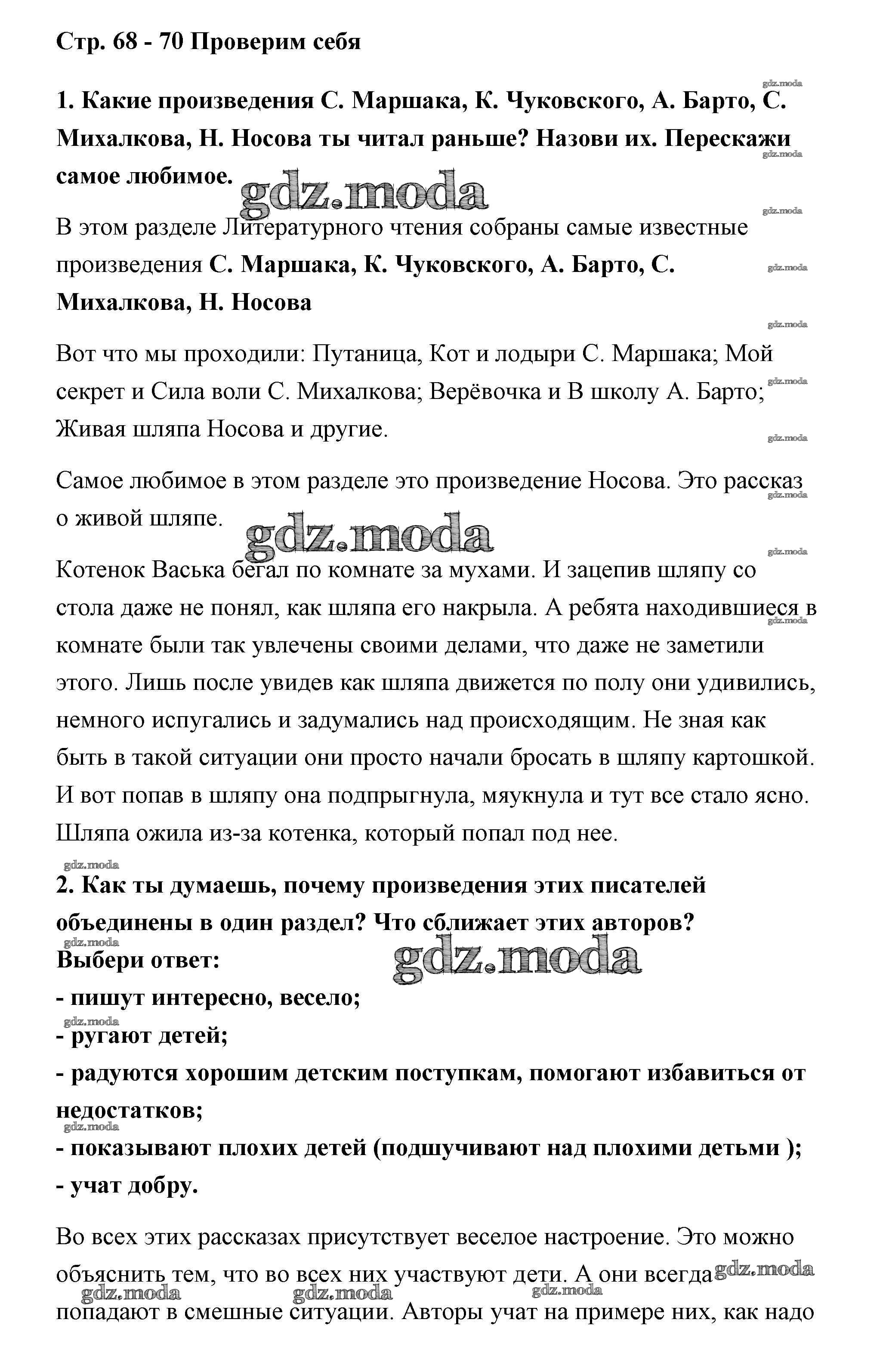 ГДЗ решение к заданию № 68-70 Литературное чтение 2 класс Климанова Просвещение 2018 Часть 1, Часть 2 ФГОС бесплатно на гдз.мода!