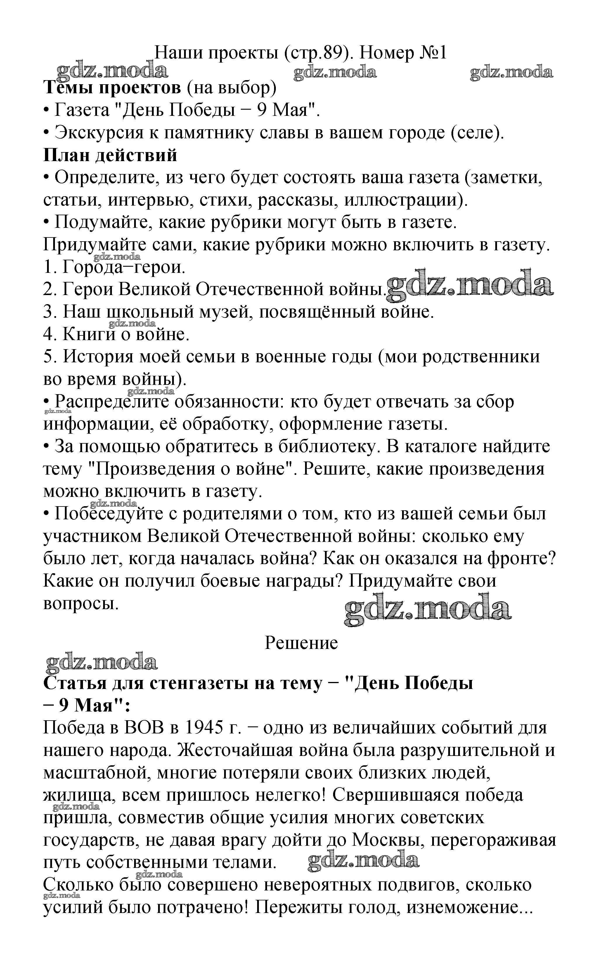 ГДЗ решение к заданию № 89 Литературное чтение 2 класс Климанова Просвещение 2018 Часть 1, Часть 2 ФГОС бесплатно на гдз.мода!