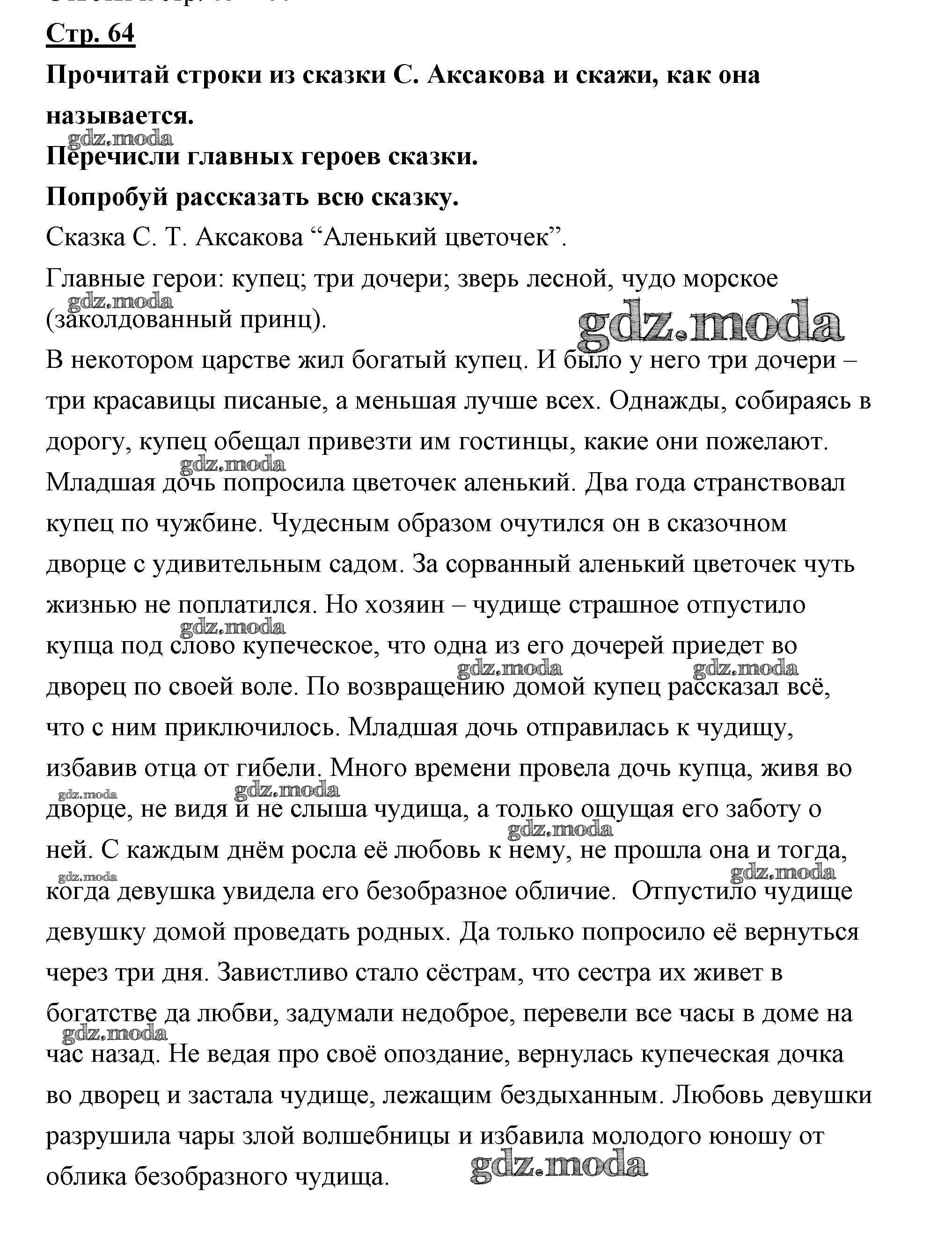 ГДЗ решение к заданию № 64 Литературное чтение 2 класс творческая тетрадь Коти Просвещение 2017 ФГОС бесплатно на гдз.мода!