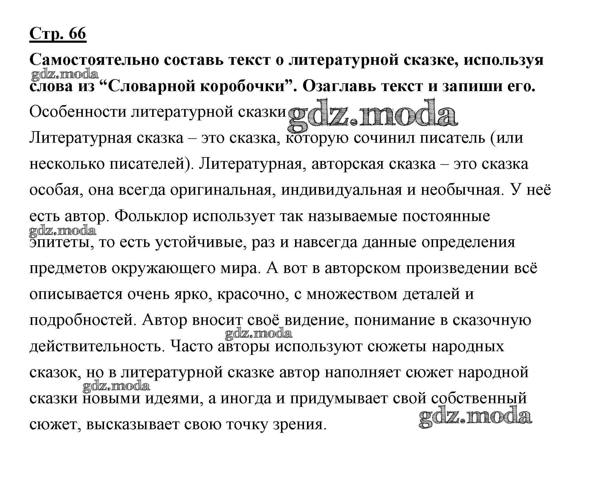 ГДЗ решение к заданию № 66 Литературное чтение 2 класс творческая тетрадь Коти Просвещение 2017 ФГОС бесплатно на гдз.мода!