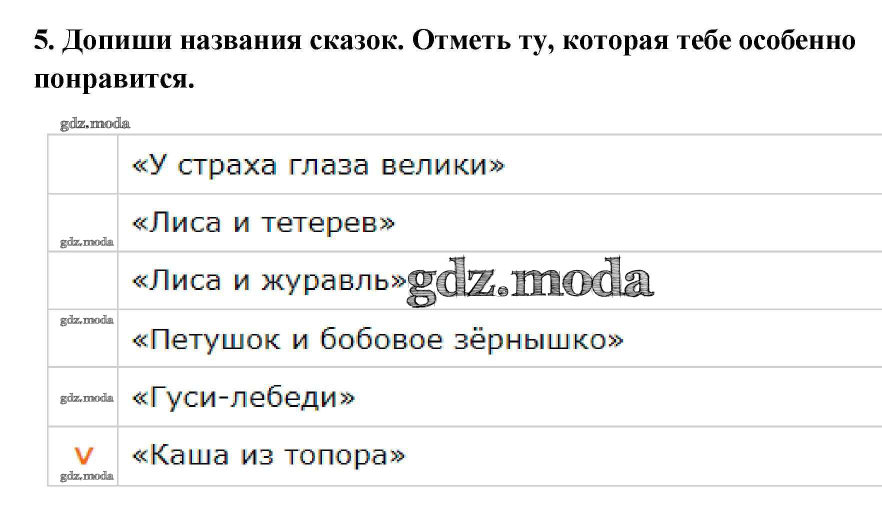 ГДЗ решение к заданию № 5 Литературное чтение 2 класс рабочая тетрадь Кутявина С.В. ВАКО 2018 ФГОС бесплатно на гдз.мода!
