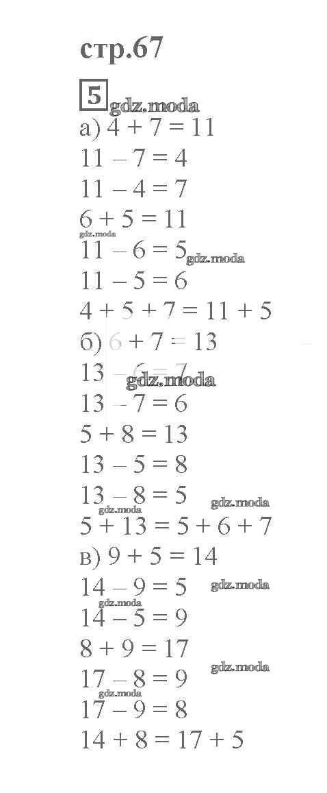 часть 1 / сложение и вычитание до 20 / стр. 67 / 5