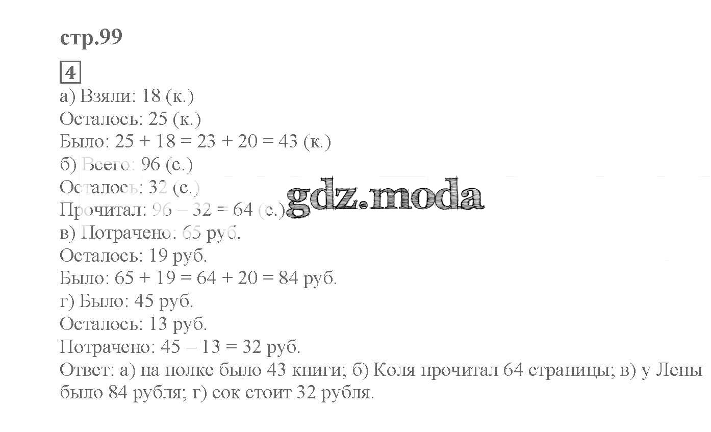 часть 1 / вычисления в пределах 100 / стр. 99 / 4