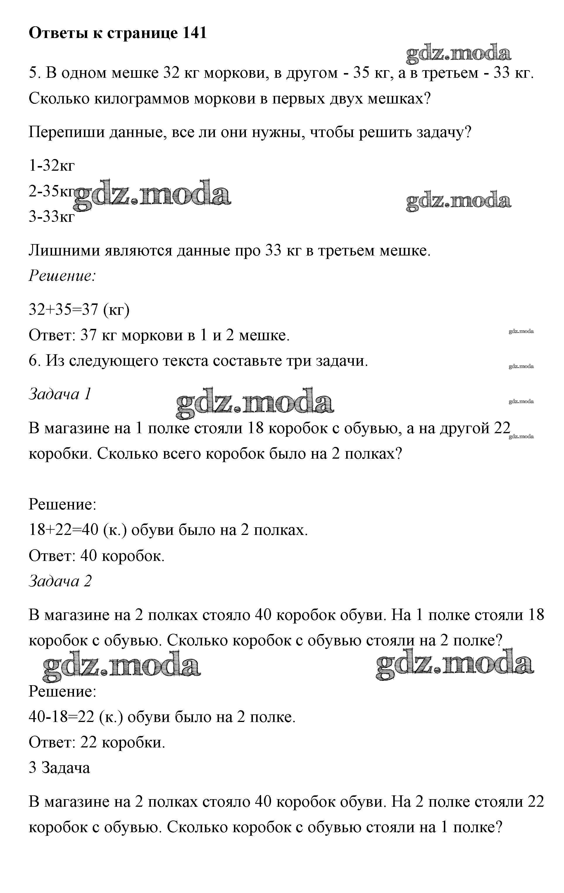 ОТВЕТ на задание № 141 Учебник по Математике 2 класс Чекин Перспективная начальная школа