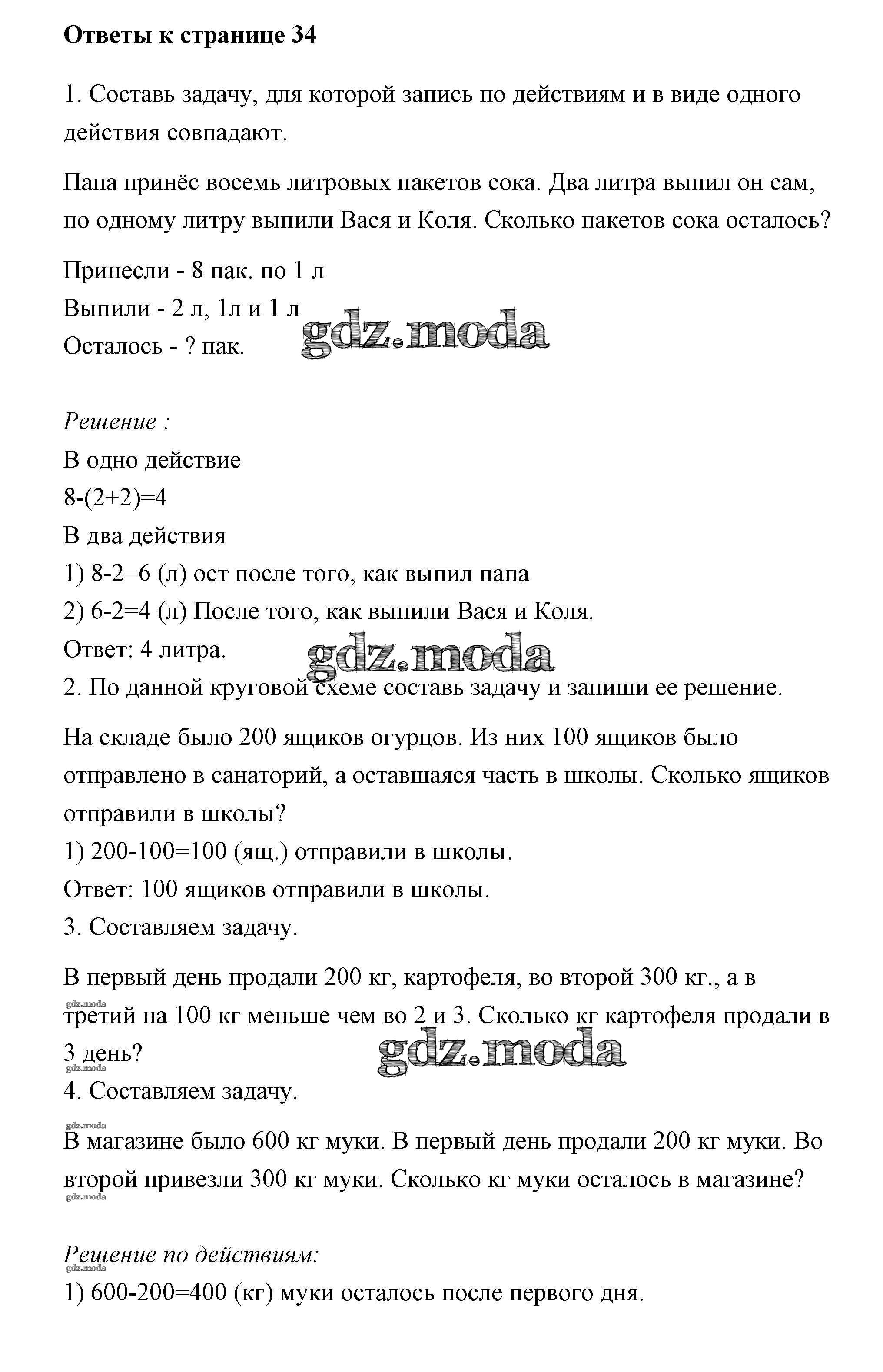 ГДЗ решение к заданию № 34 Математика 2 класс Чекин Академкнига 2017 Часть 2 бесплатно на гдз.мода!