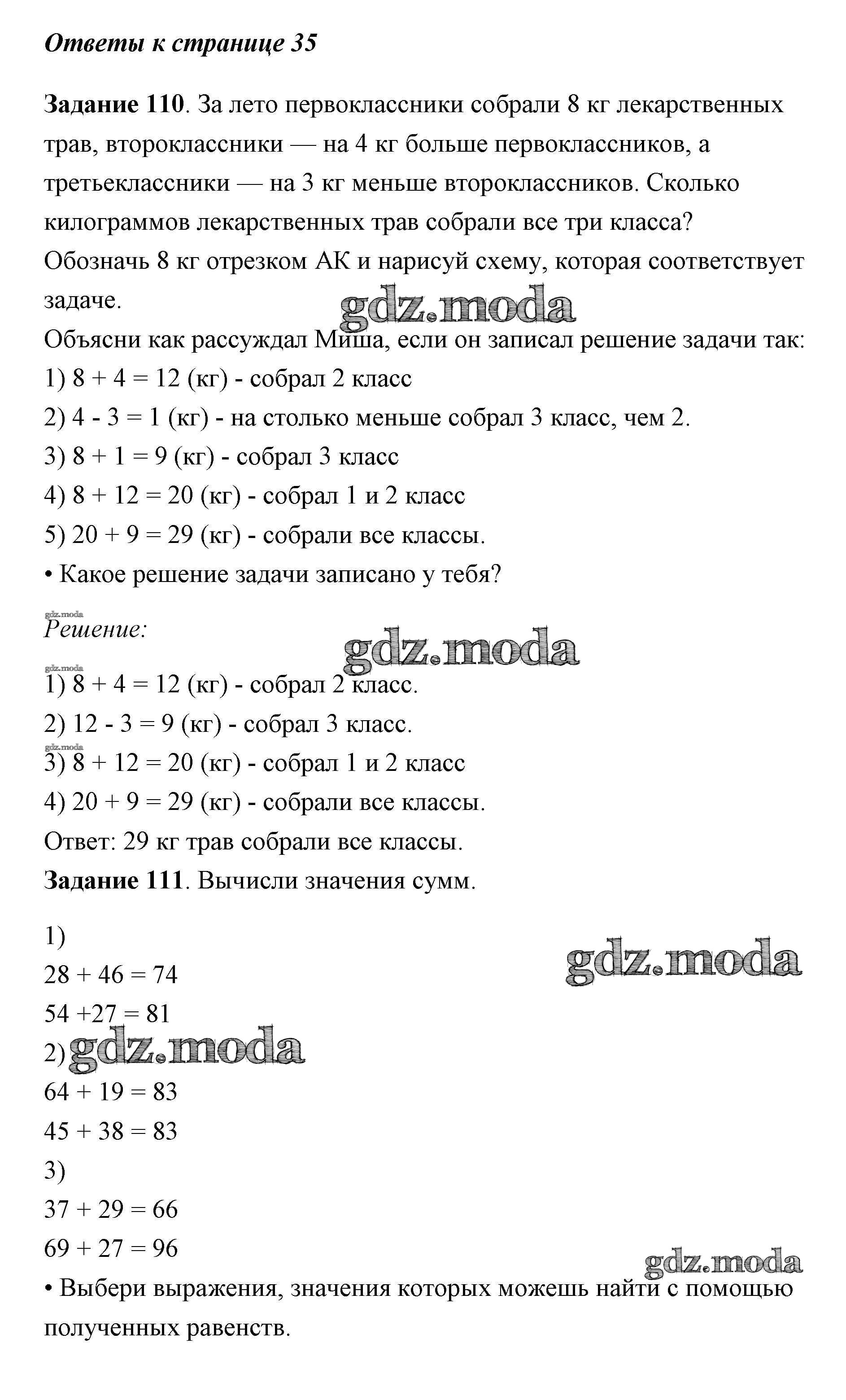 ГДЗ решение к заданию № 35 Математика 2 класс Истомина Ассоциация 21 век 2016 Часть 2 ФГОС бесплатно на гдз.мода!