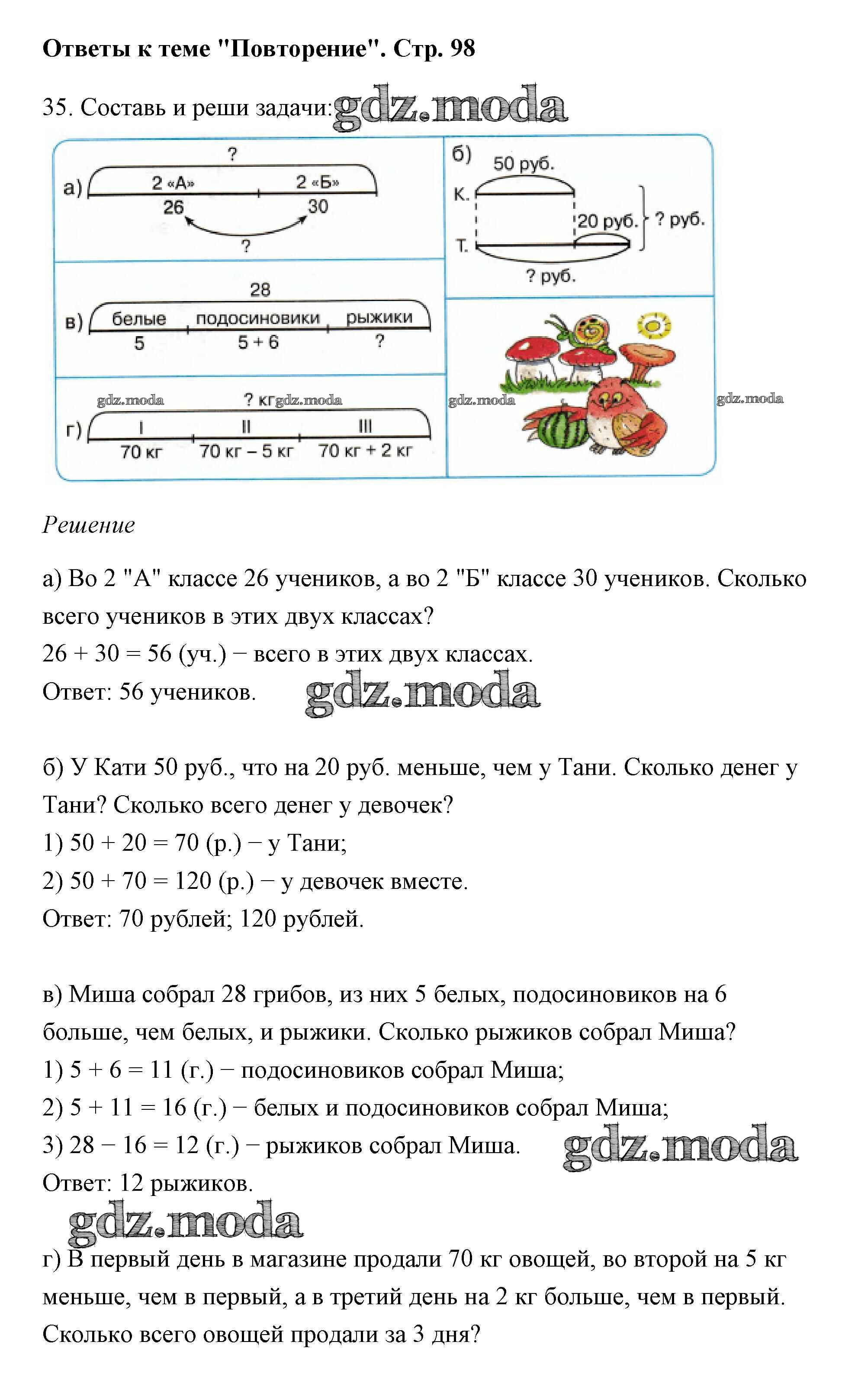 ГДЗ решение к заданию № 98 Математика 2 класс Петерсон (Перспектива) Ювента 2016 Часть 1, Часть 2, Часть 3 ФГОС бесплатно на гдз.мода!