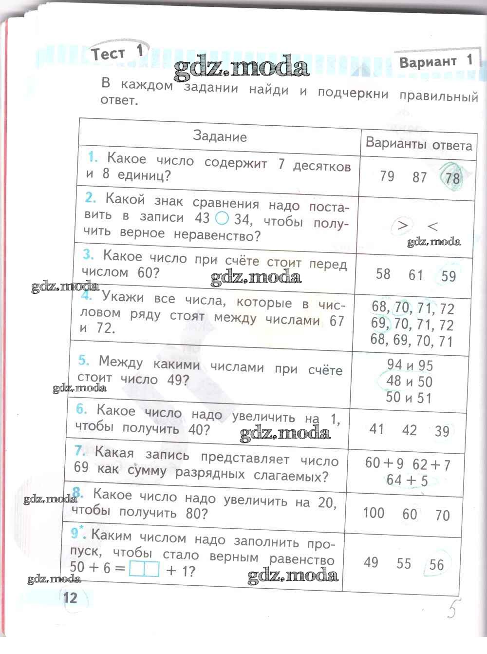 ОТВЕТ на задание № 12 Проверочные работы по Математике 2 класс Волкова Школа России