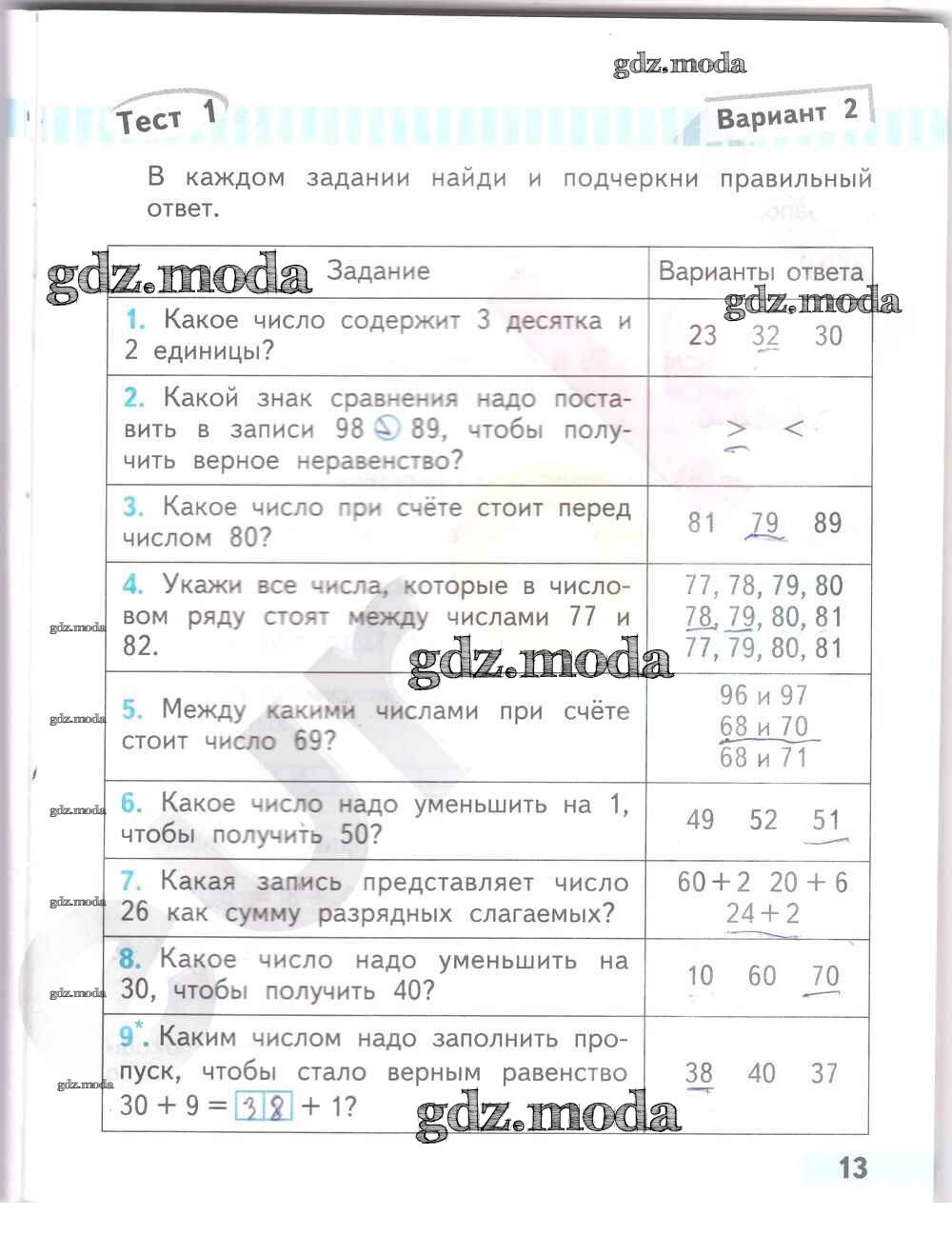 ОТВЕТ на задание № 13 Проверочные работы по Математике 2 класс Волкова Школа России