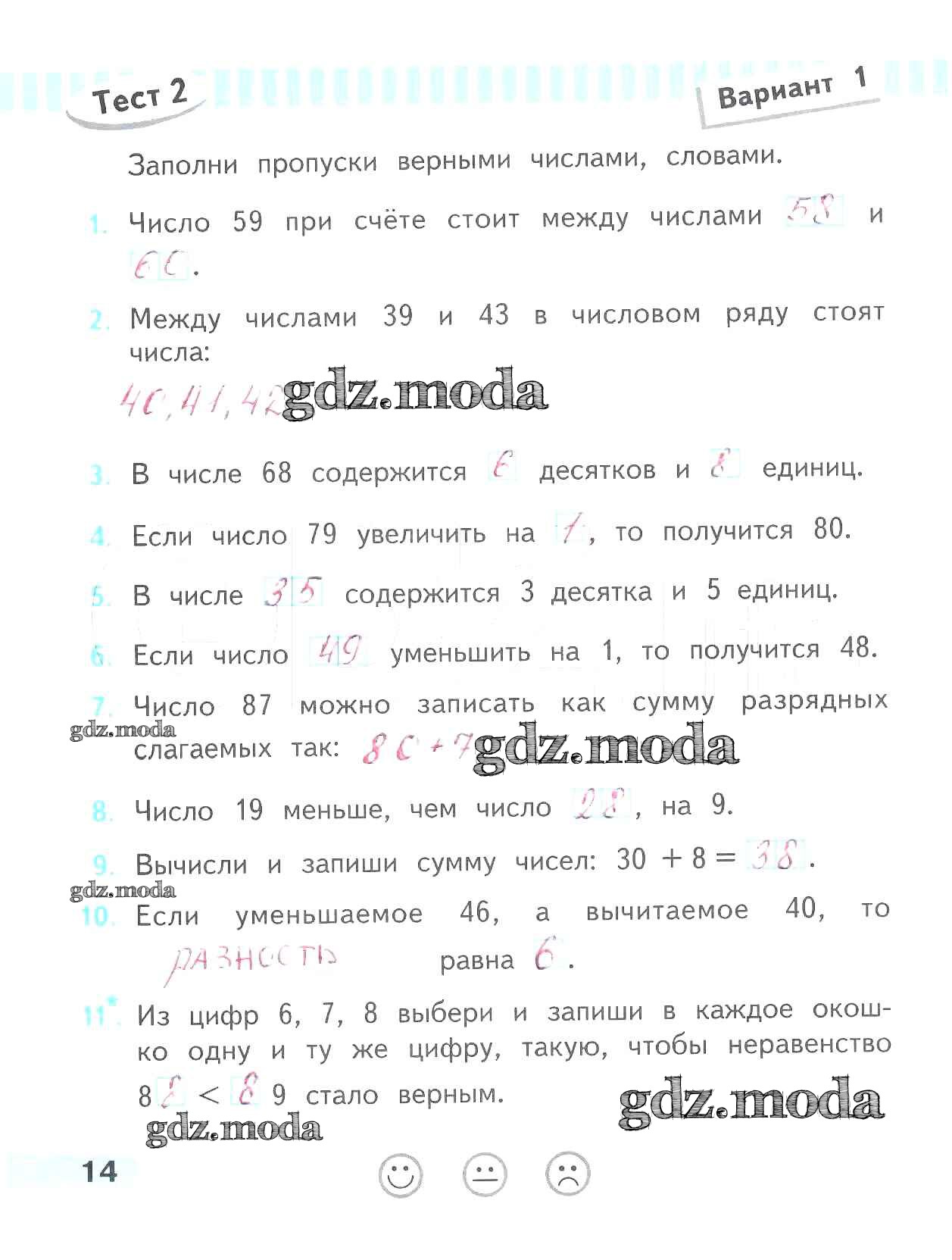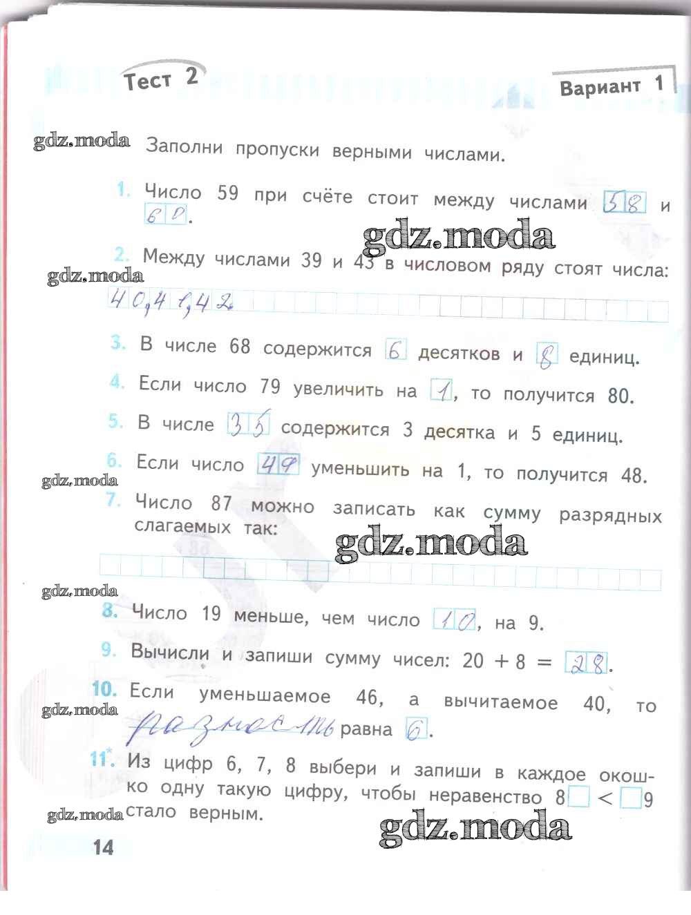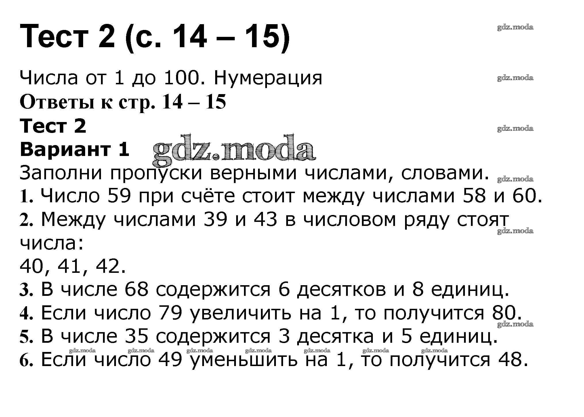 ОТВЕТ на задание № 14 Проверочные работы по Математике 2 класс Волкова Школа России