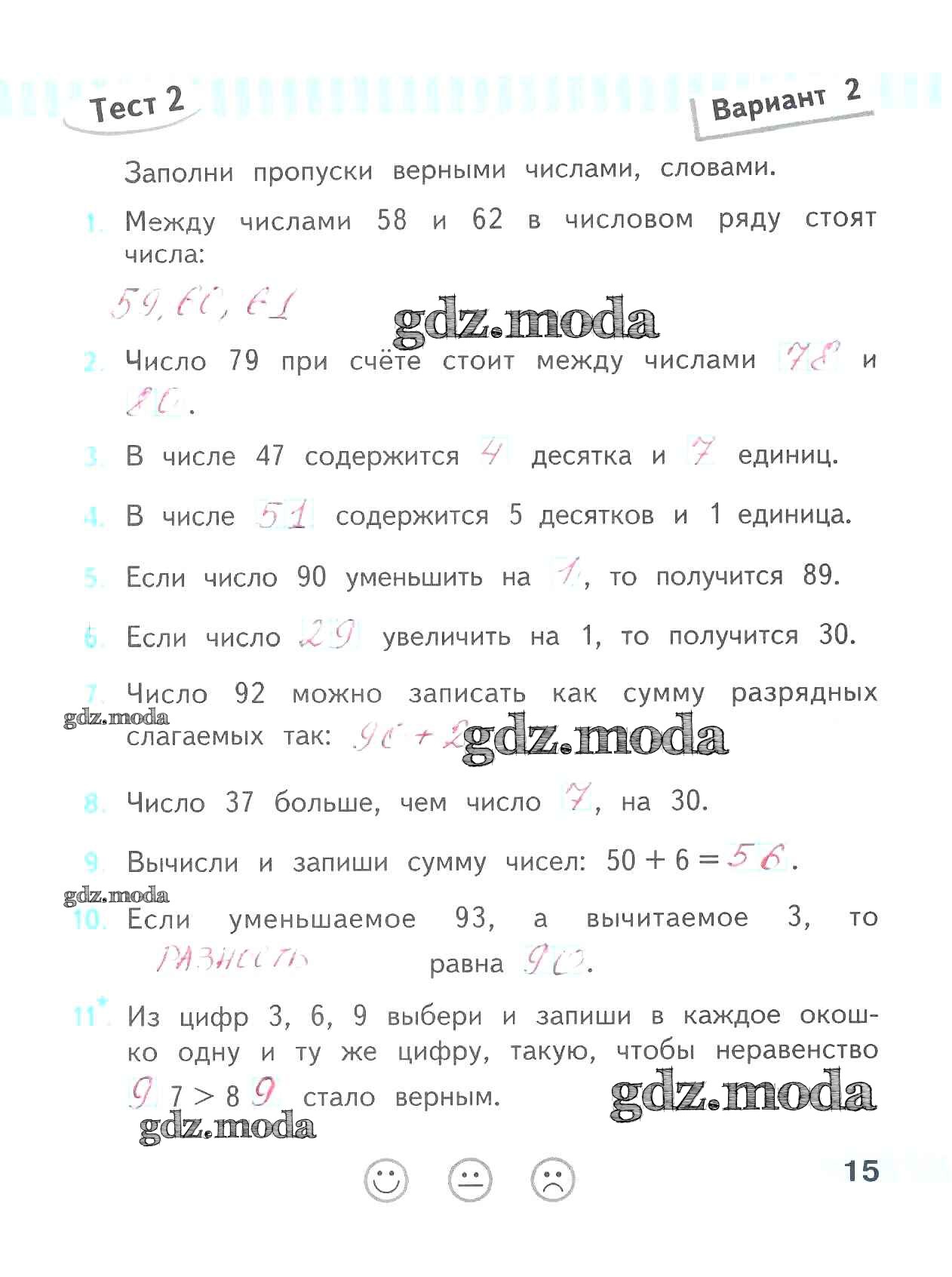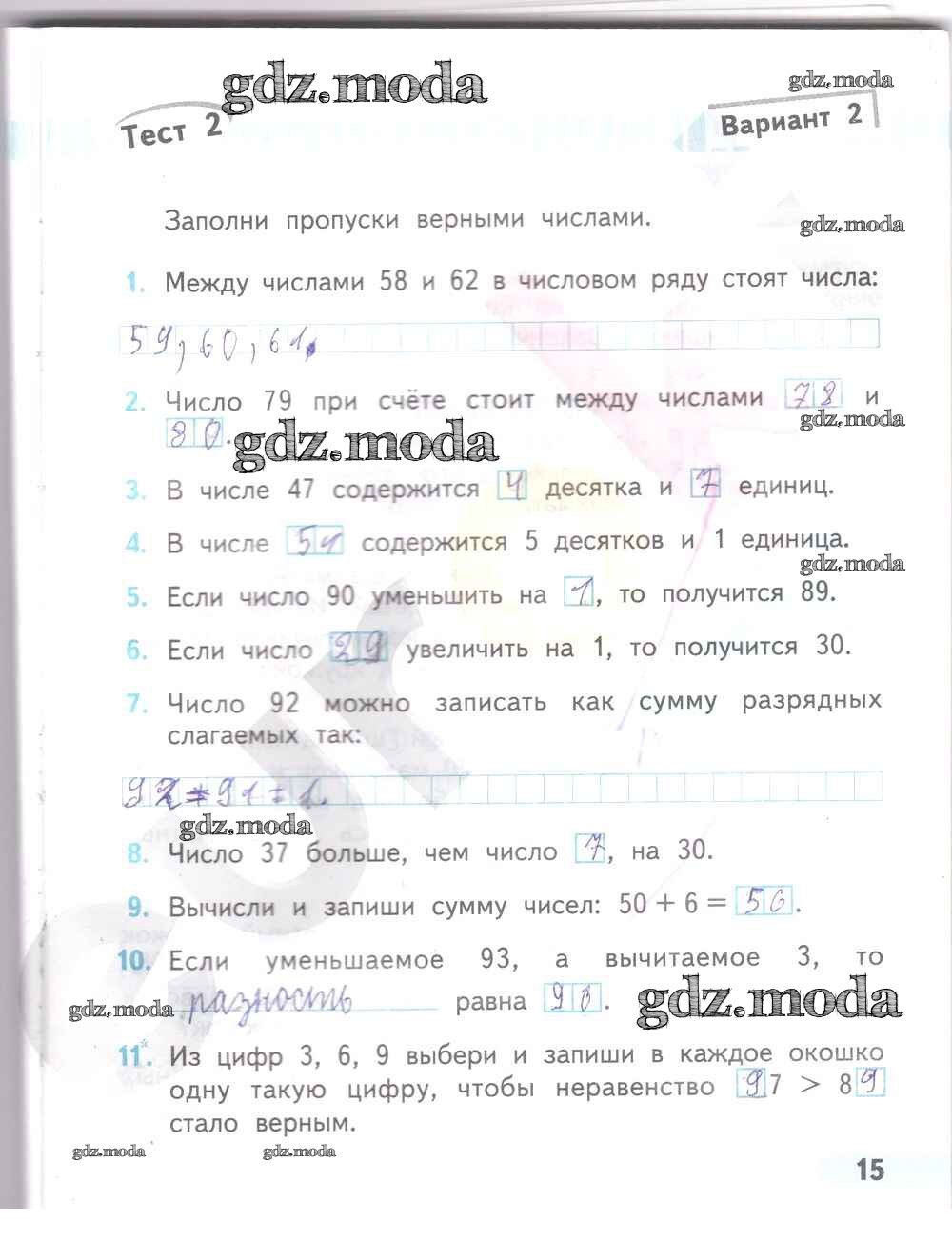 ОТВЕТ на задание № 15 Проверочные работы по Математике 2 класс Волкова Школа России