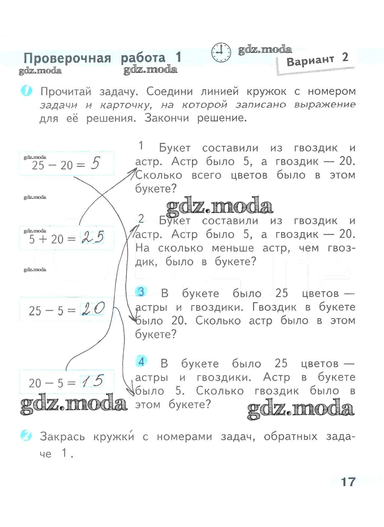 ОТВЕТ на задание № 17 Проверочные работы по Математике 2 класс Волкова Школа России