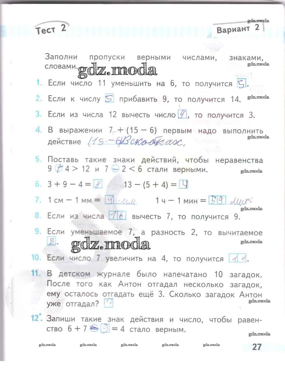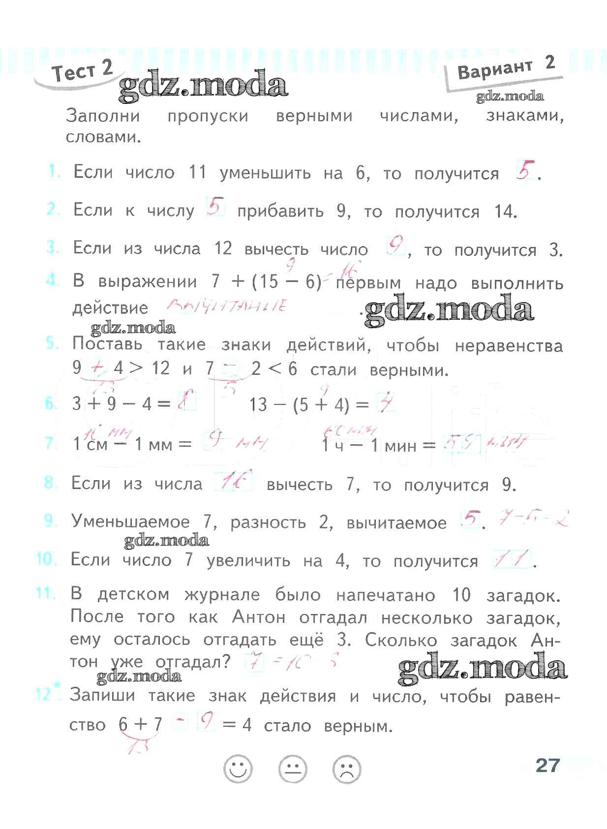ОТВЕТ на задание № 27 Проверочные работы по Математике 2 класс Волкова Школа России