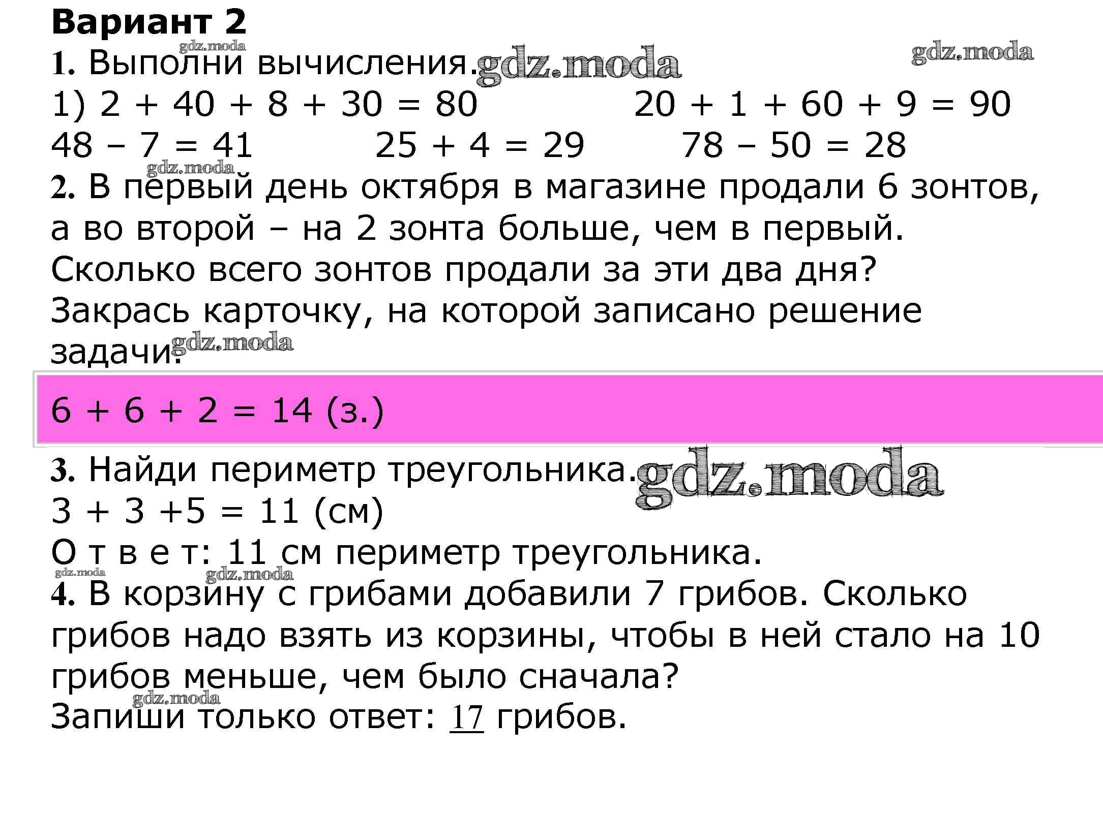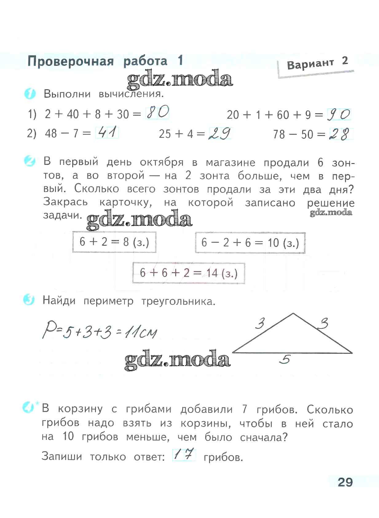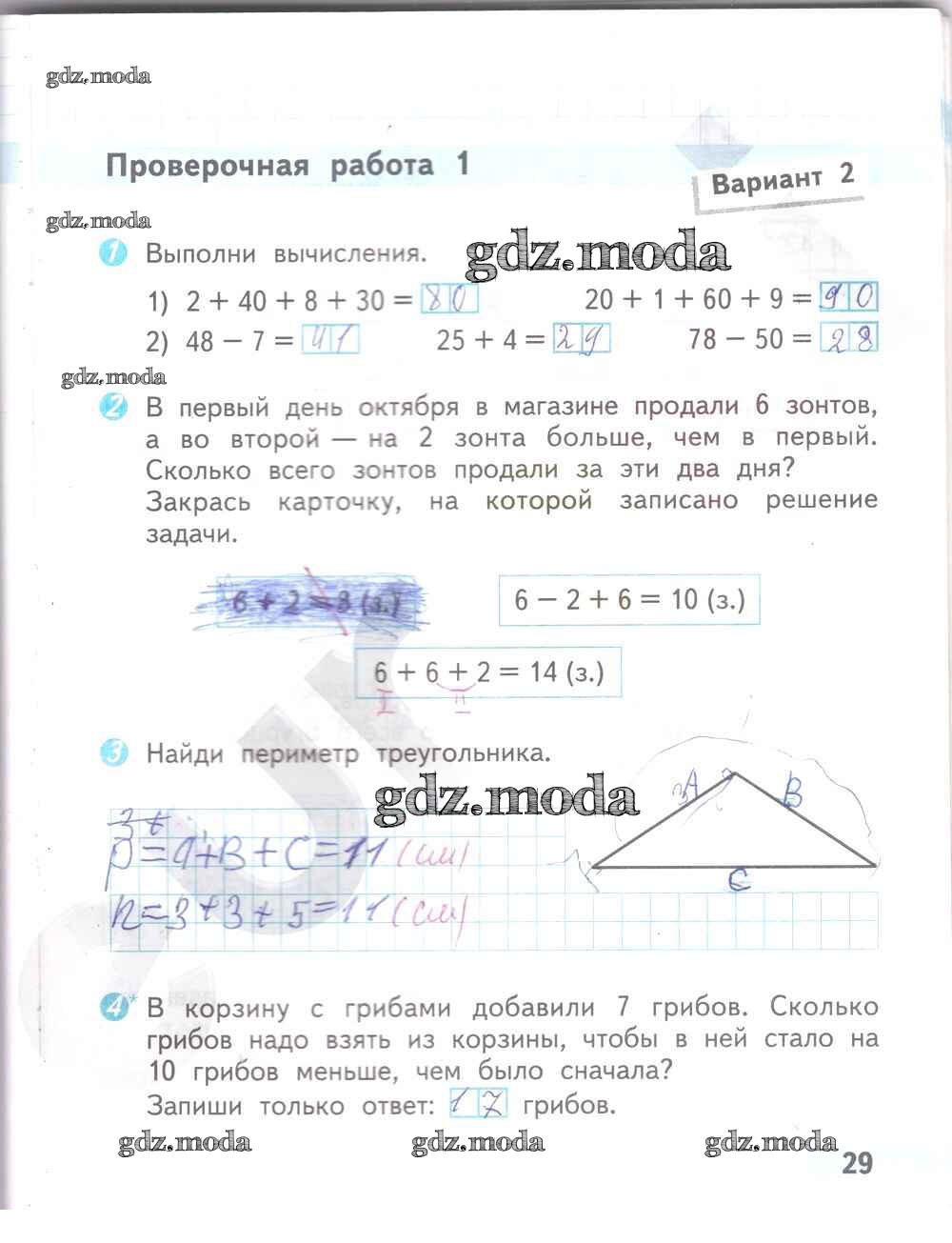 ОТВЕТ на задание № 29 Проверочные работы по Математике 2 класс Волкова Школа России