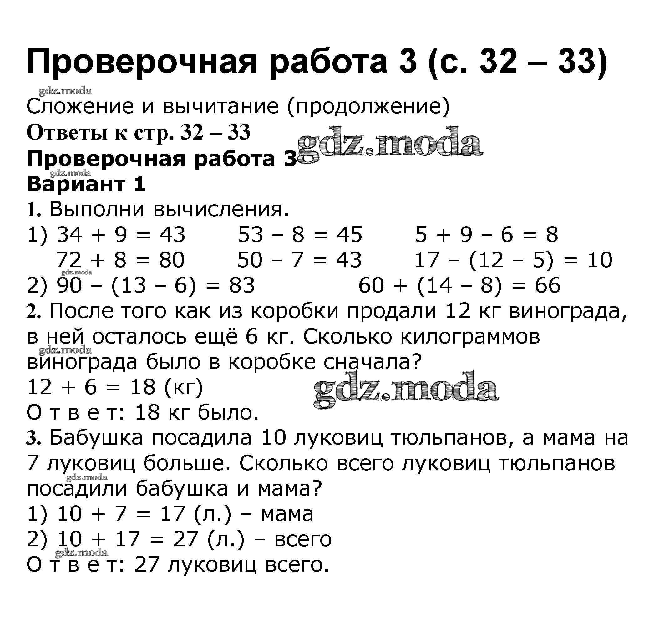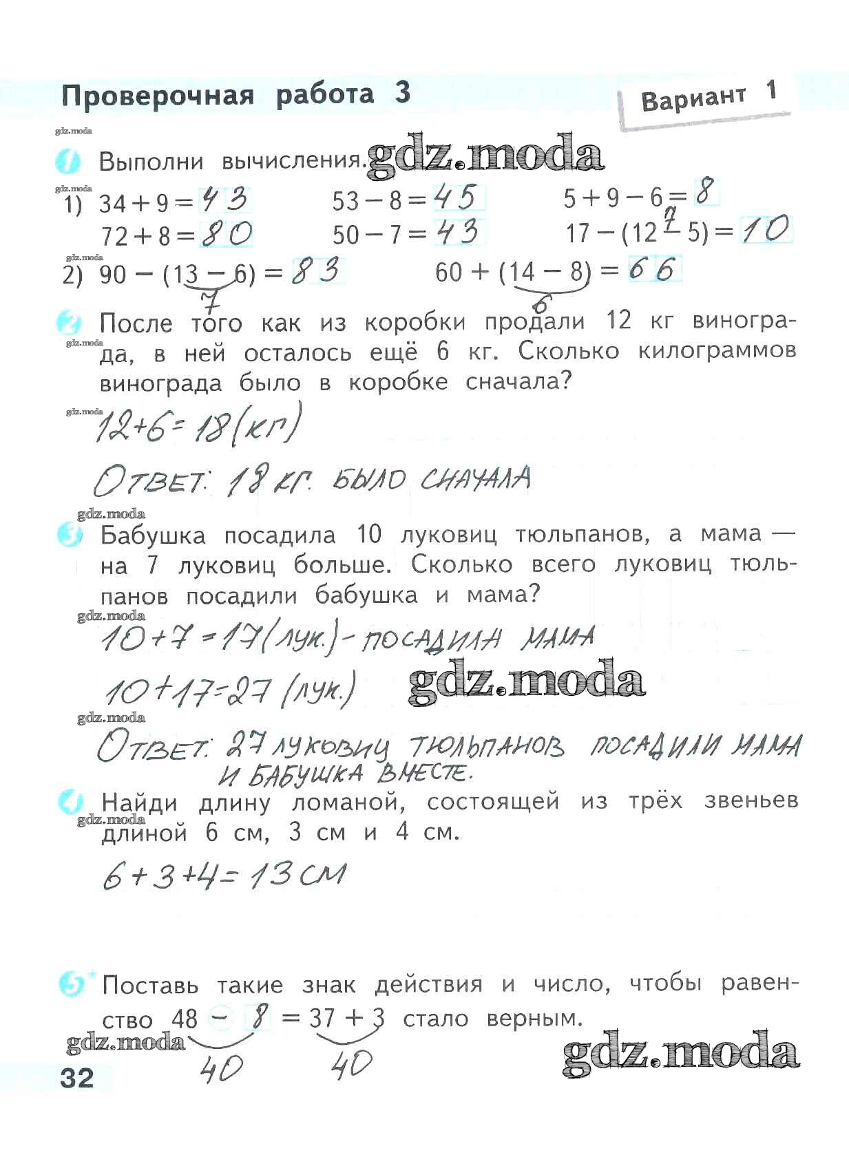 ОТВЕТ на задание № 32 Проверочные работы по Математике 2 класс Волкова Школа России