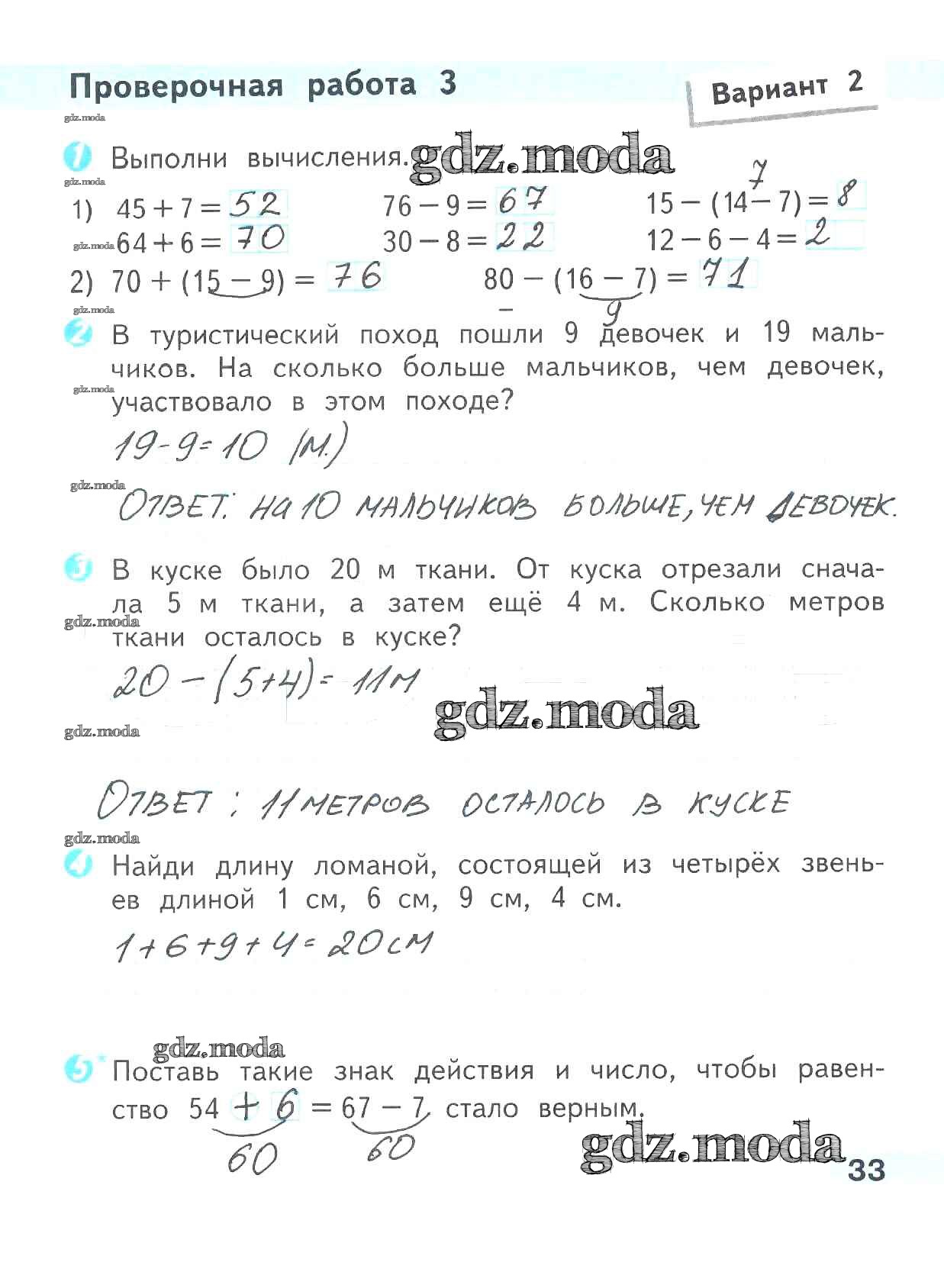 ОТВЕТ на задание № 33 Проверочные работы по Математике 2 класс Волкова Школа России