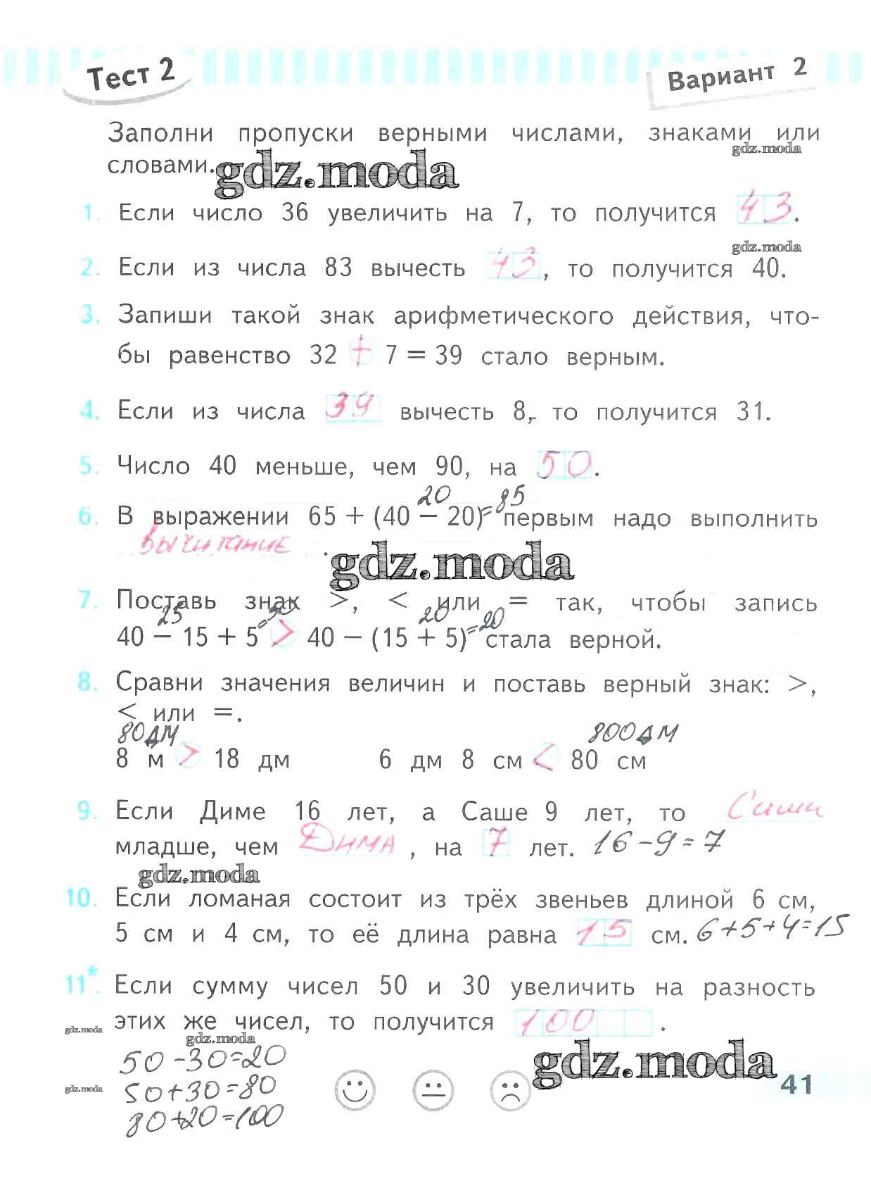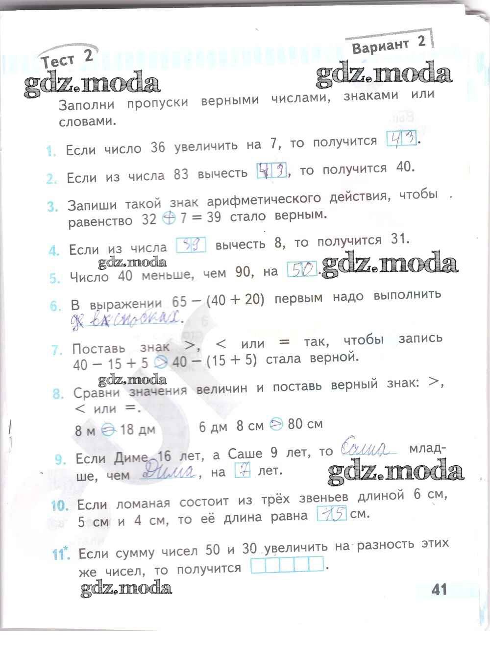 ОТВЕТ на задание № 41 Проверочные работы по Математике 2 класс Волкова Школа России