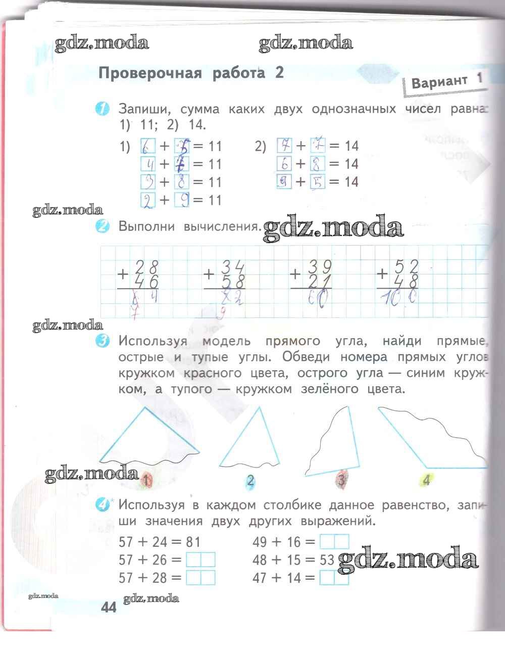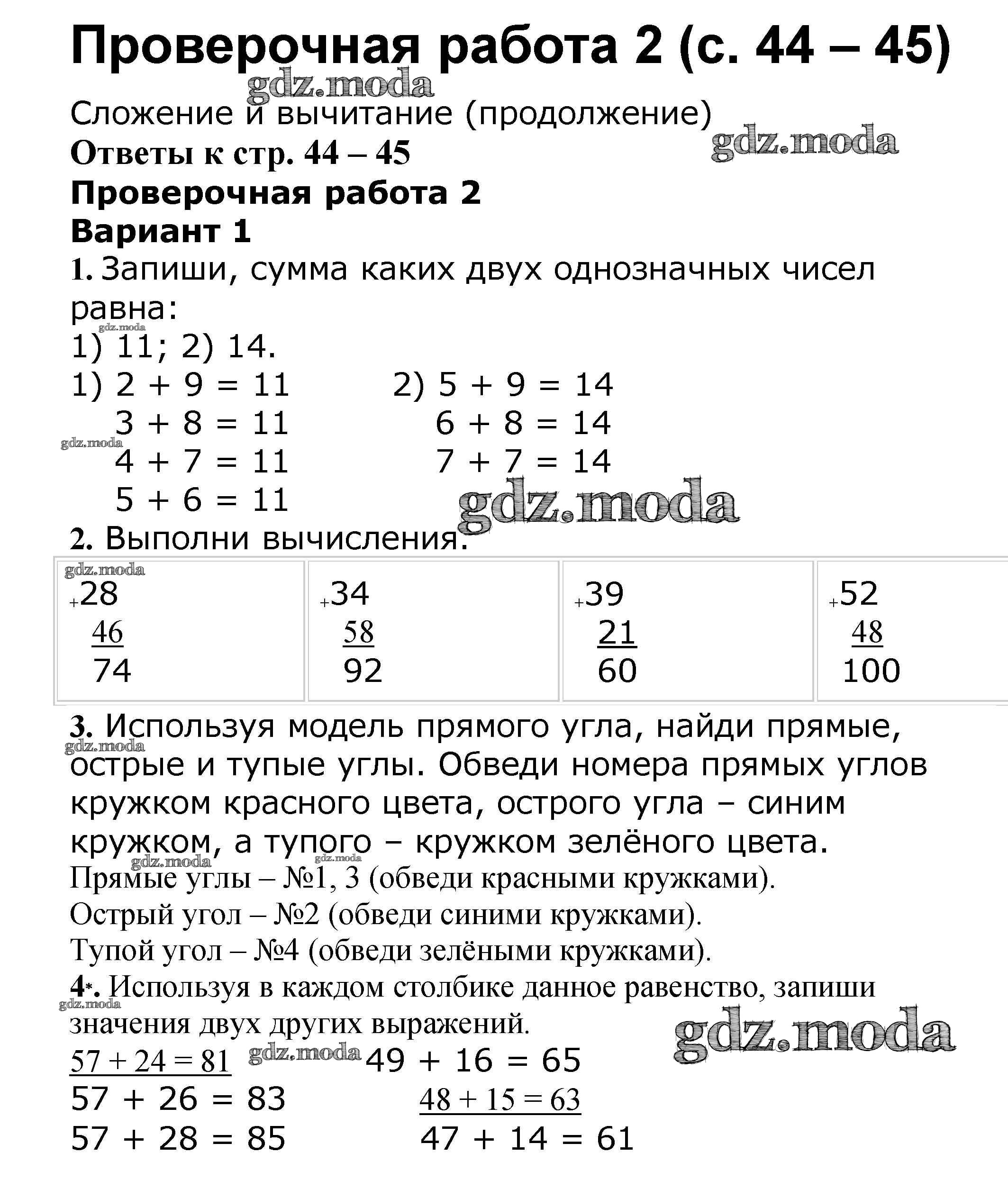 ОТВЕТ на задание № 44 Проверочные работы по Математике 2 класс Волкова Школа России