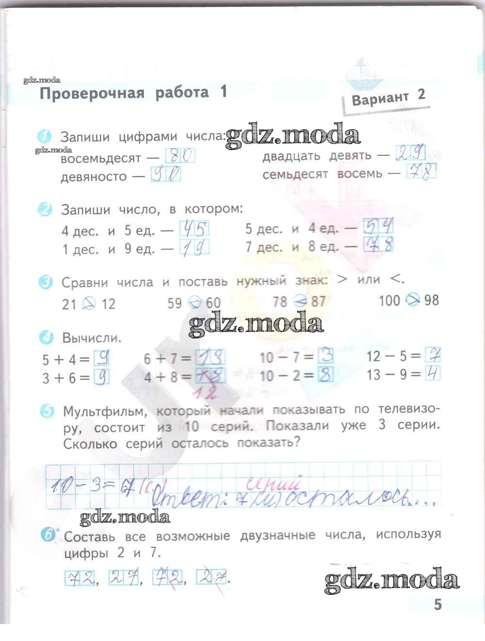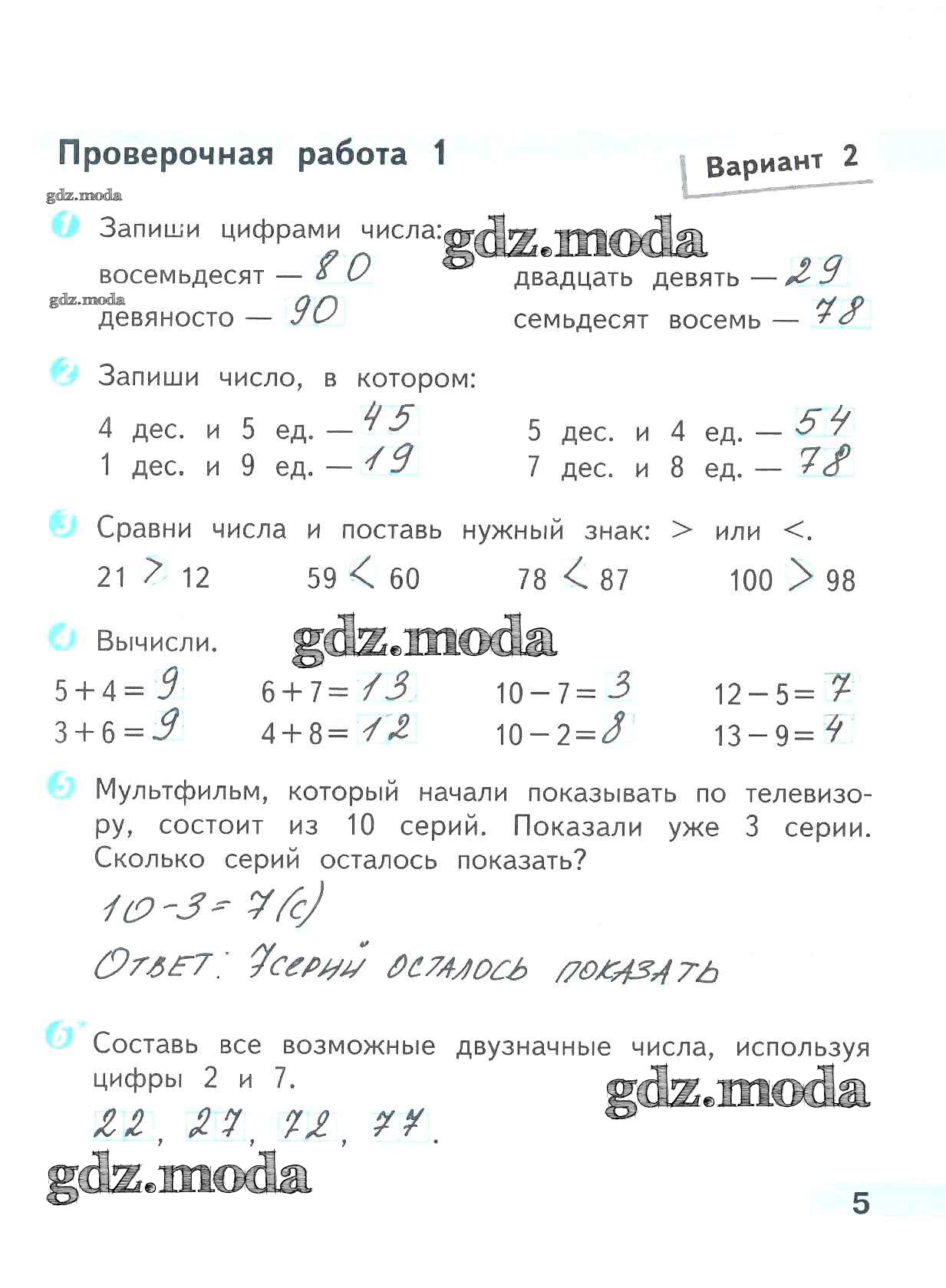 ОТВЕТ на задание № 5 Проверочные работы по Математике 2 класс Волкова Школа России