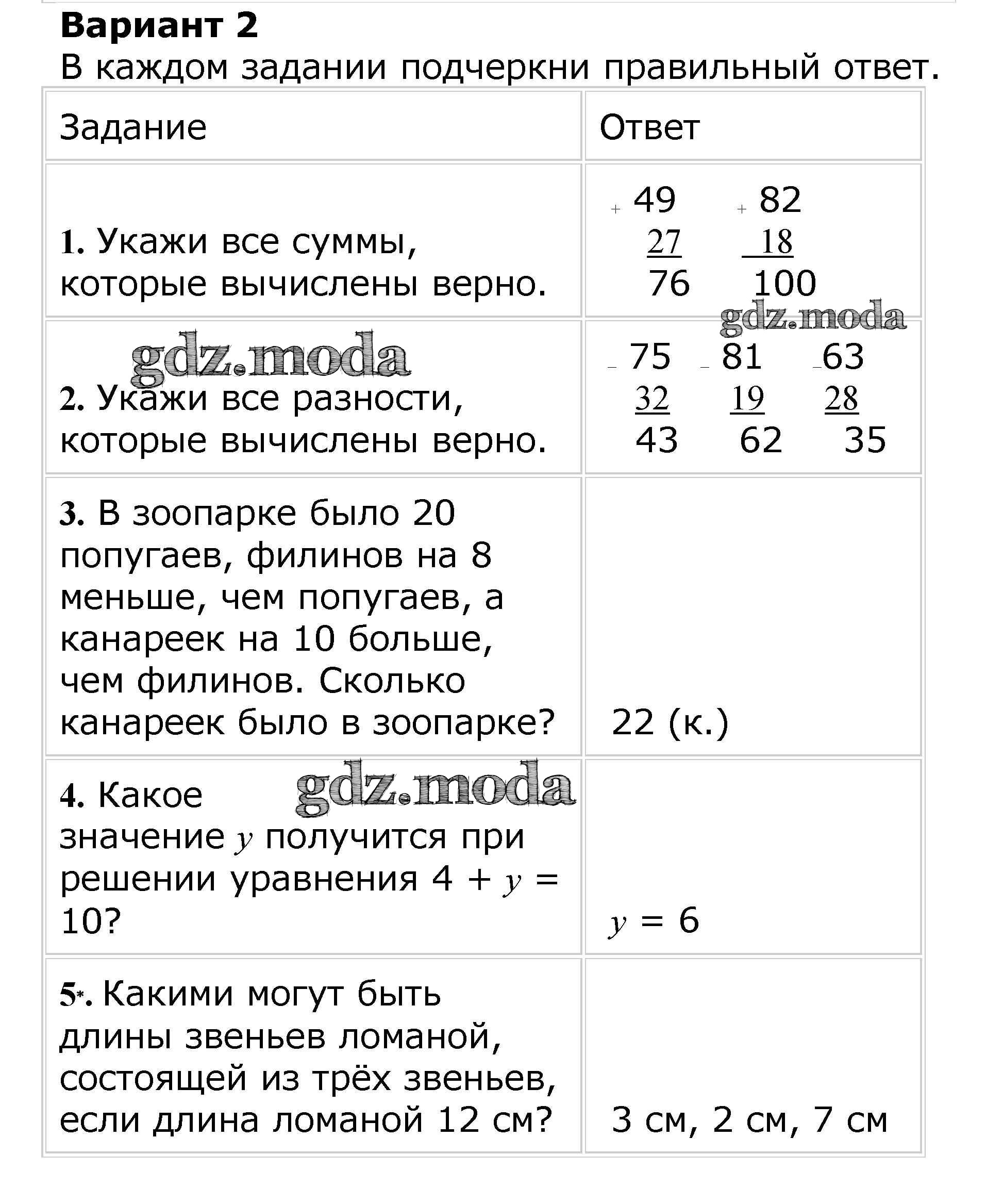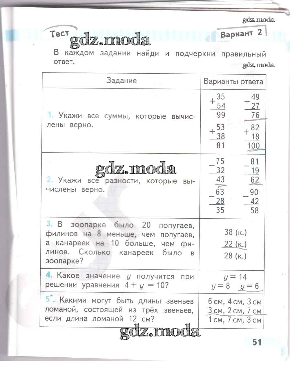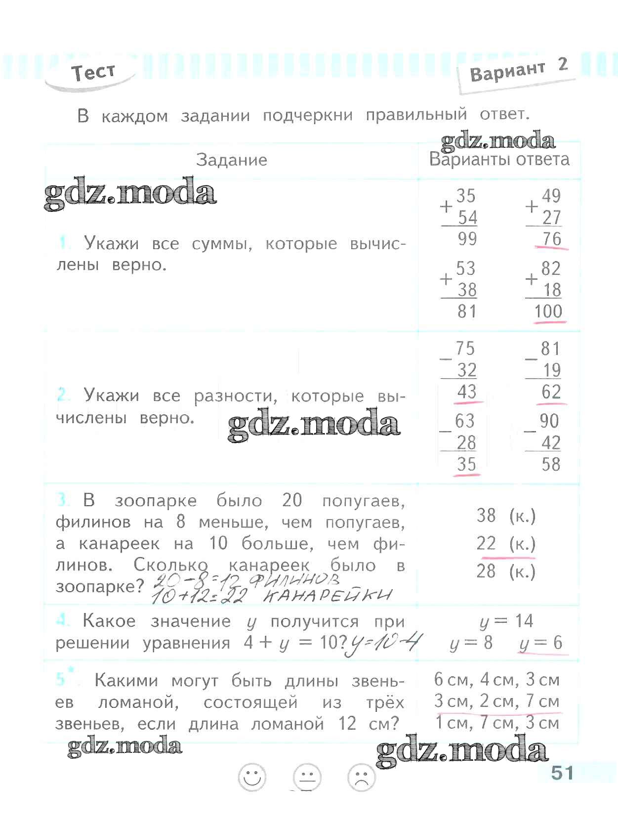 ОТВЕТ на задание № 51 Проверочные работы по Математике 2 класс Волкова Школа России