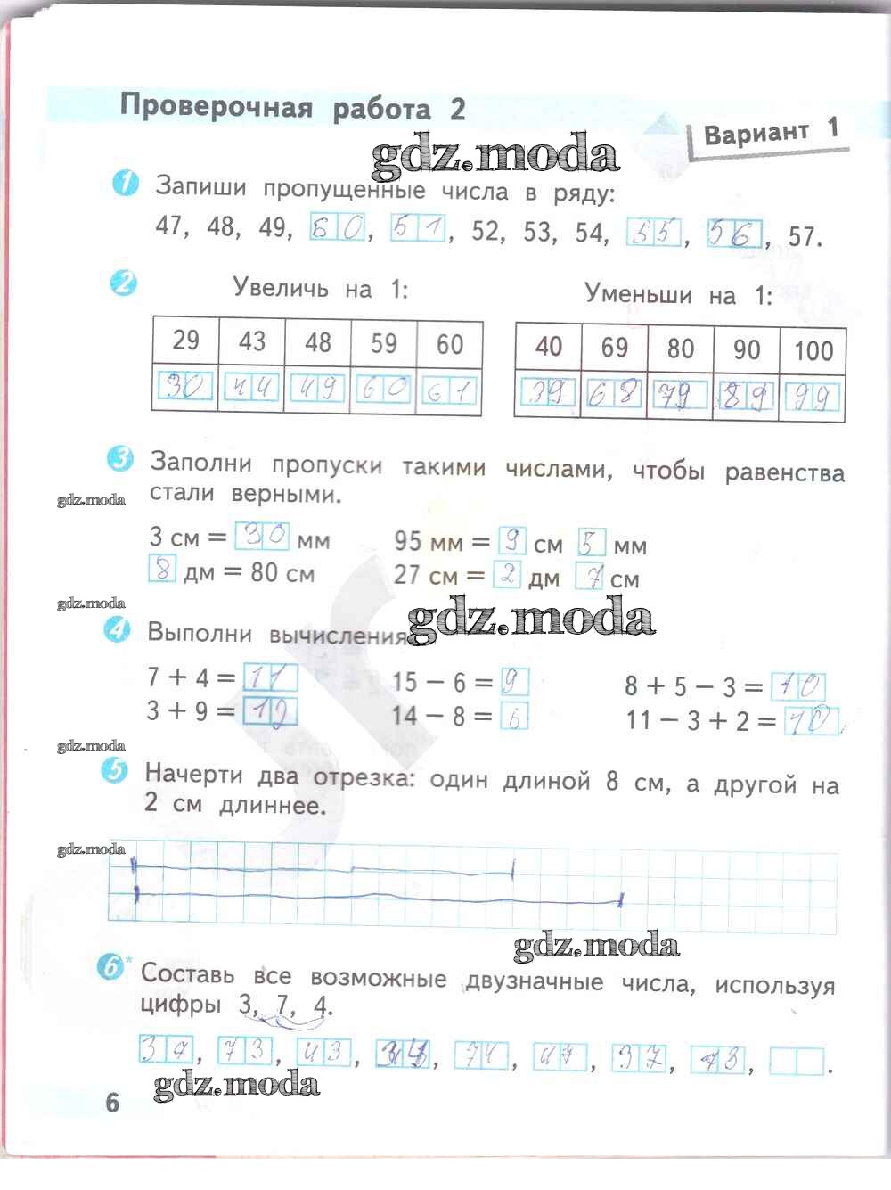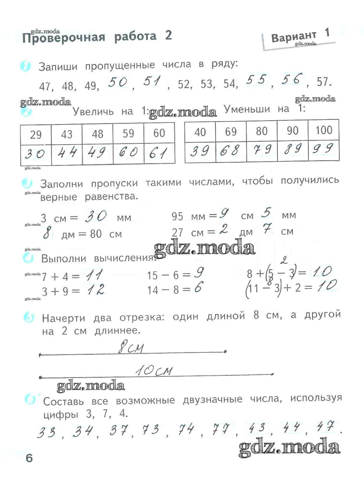 ОТВЕТ на задание № 6 Проверочные работы по Математике 2 класс Волкова Школа России