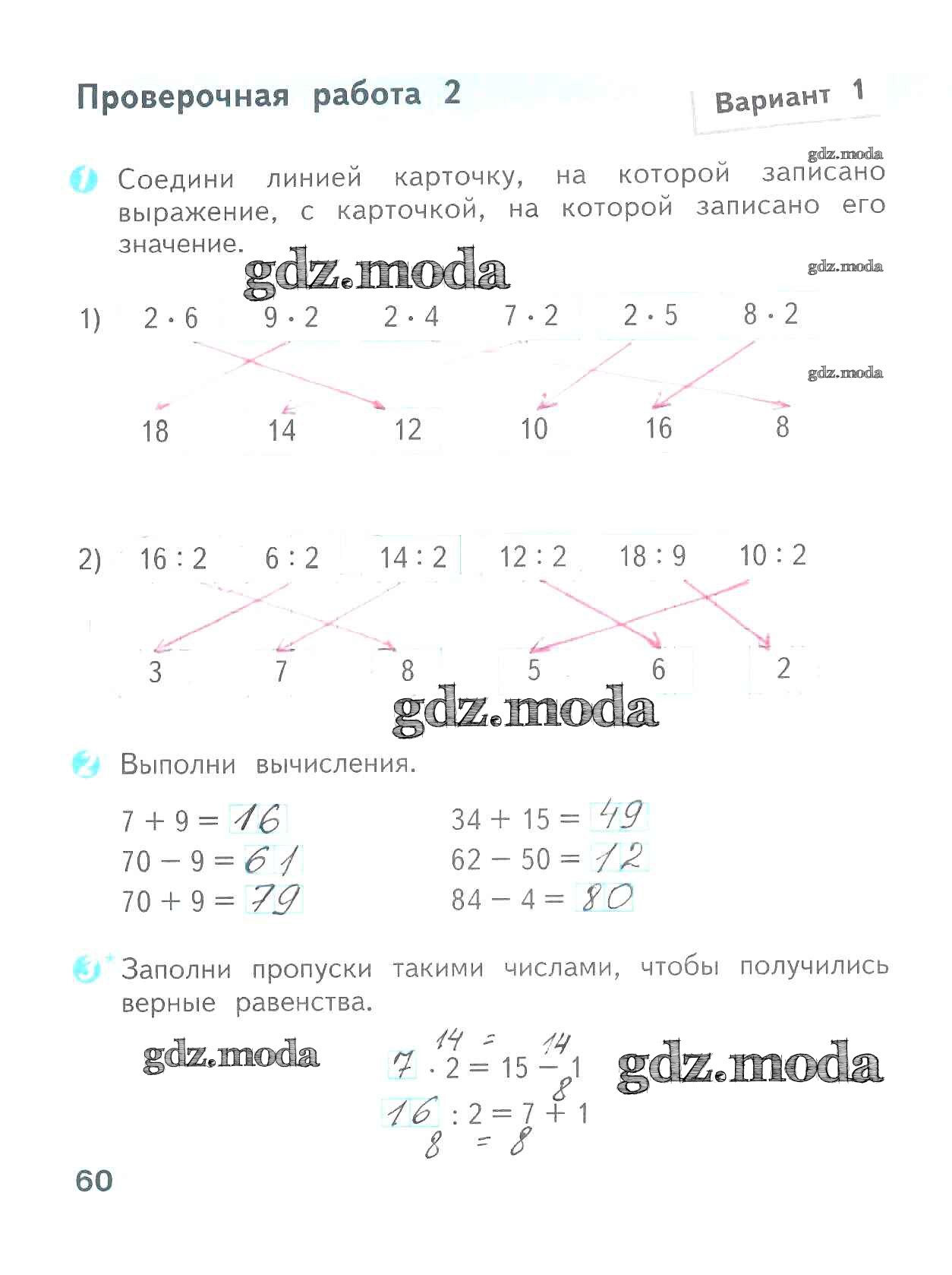 ОТВЕТ на задание № 60 Проверочные работы по Математике 2 класс Волкова Школа России