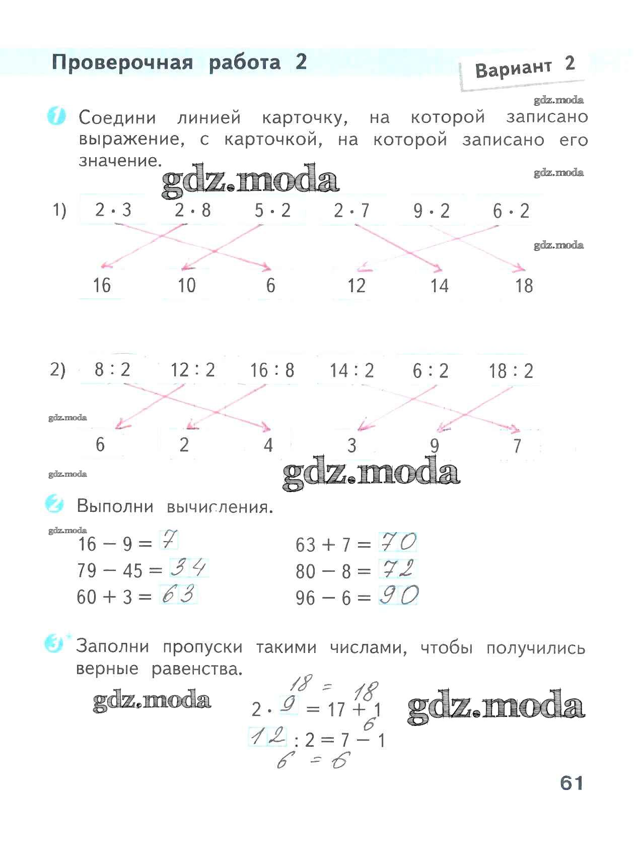 ОТВЕТ на задание № 61 Проверочные работы по Математике 2 класс Волкова Школа России