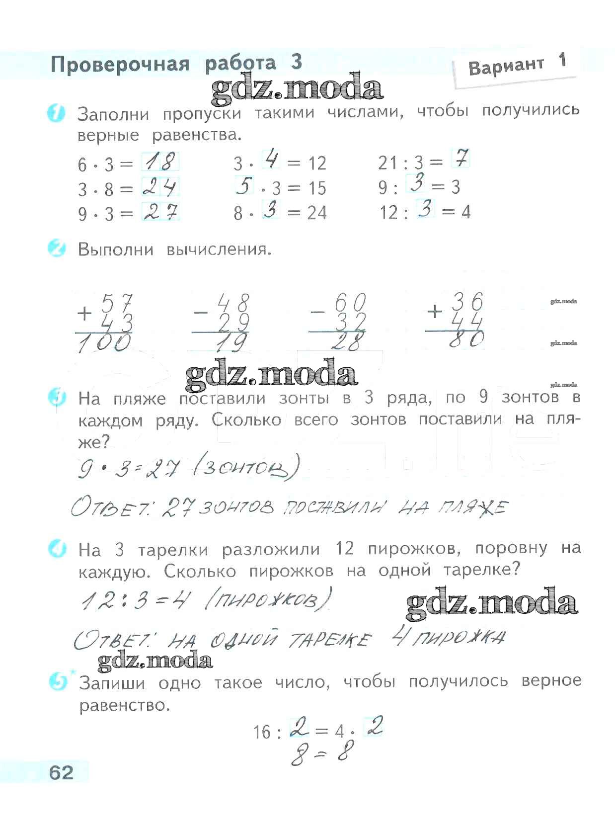 ОТВЕТ на задание № 62 Проверочные работы по Математике 2 класс Волкова Школа России