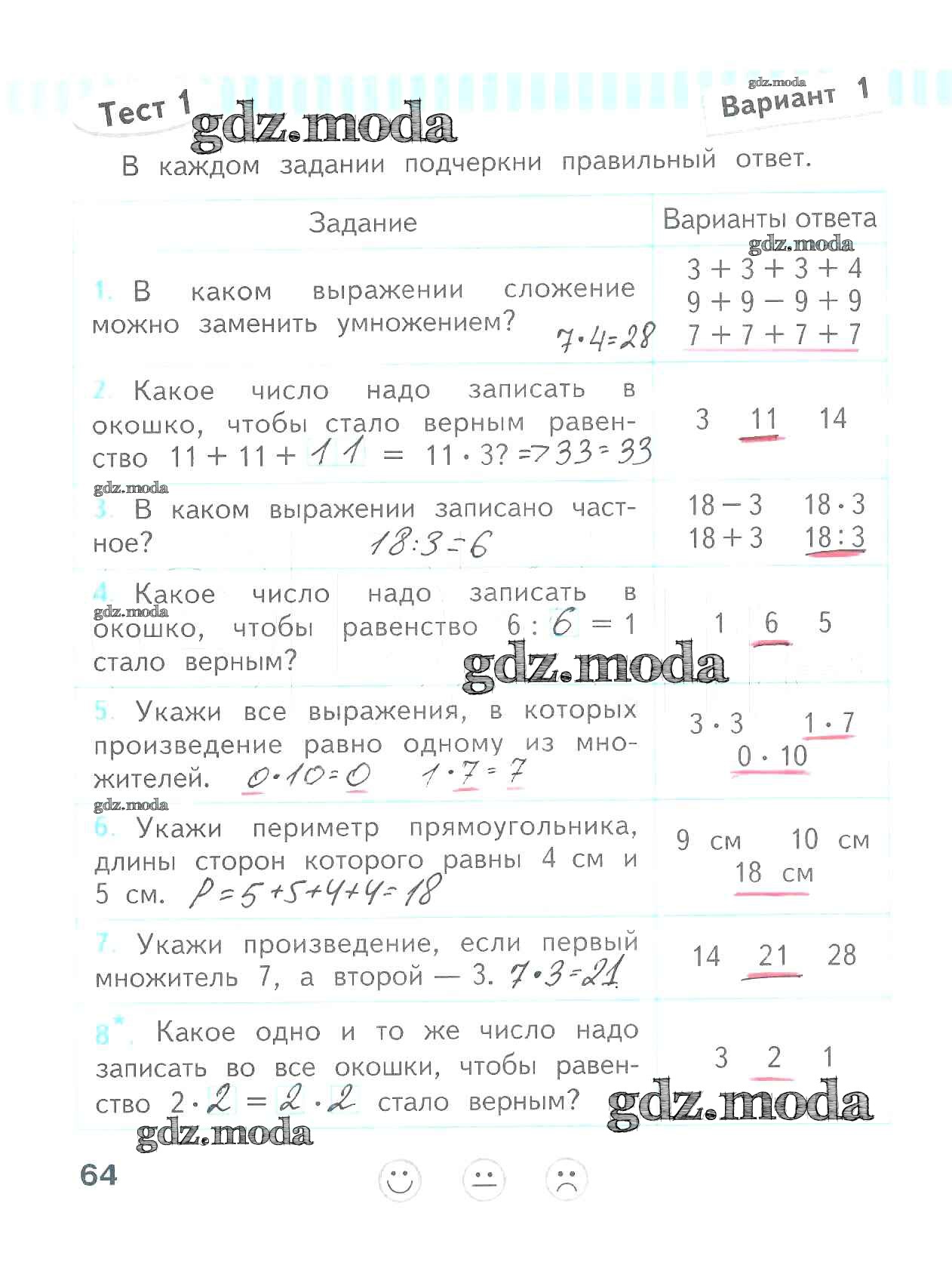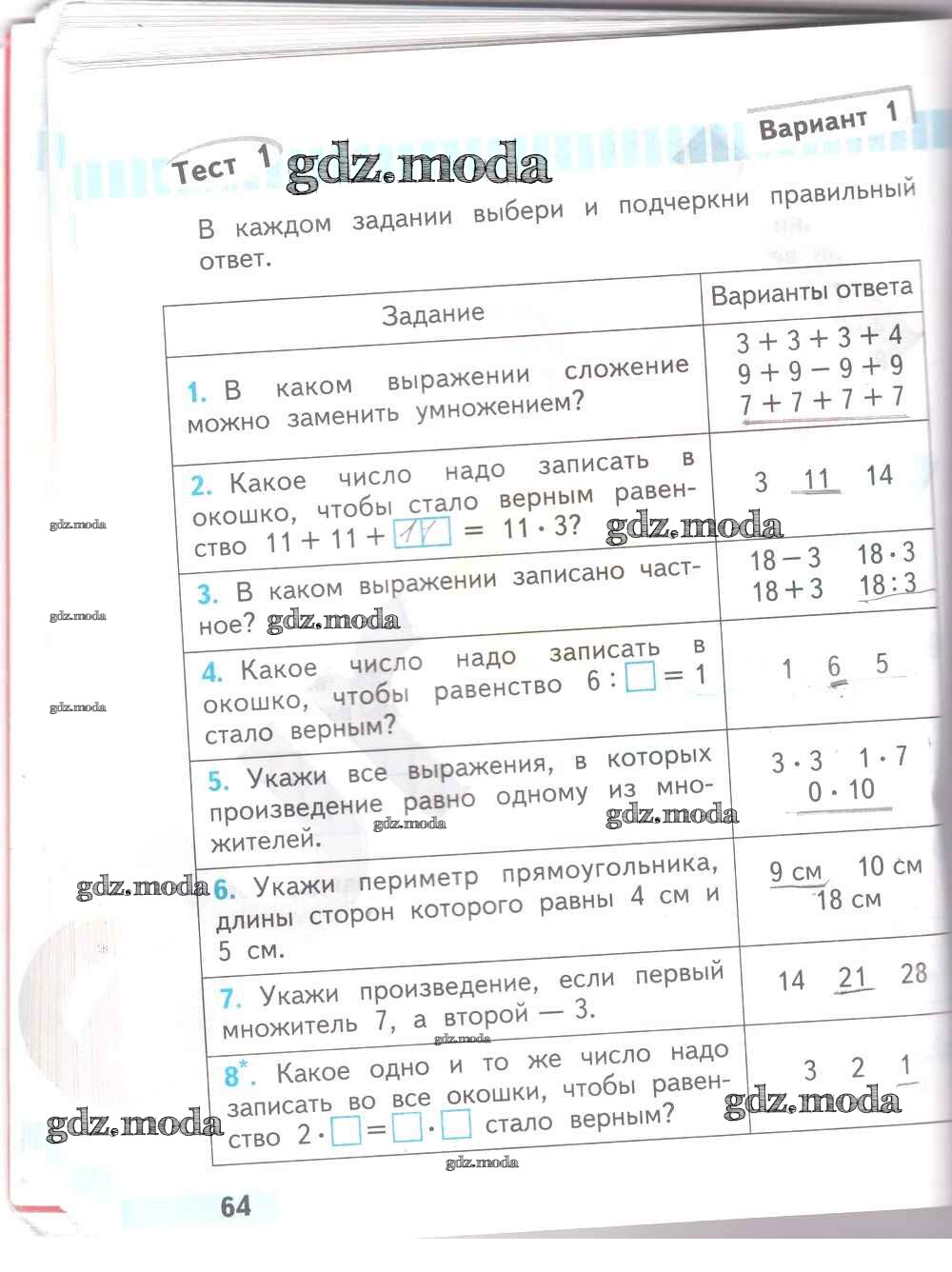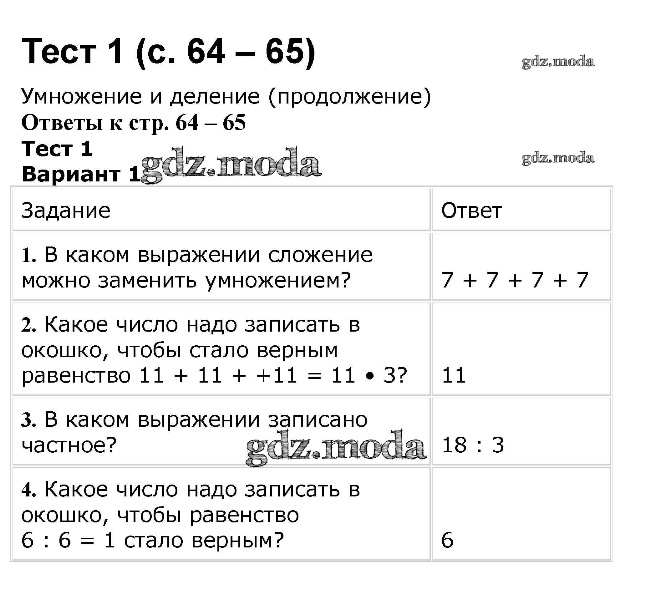 ОТВЕТ на задание № 64 Проверочные работы по Математике 2 класс Волкова Школа России