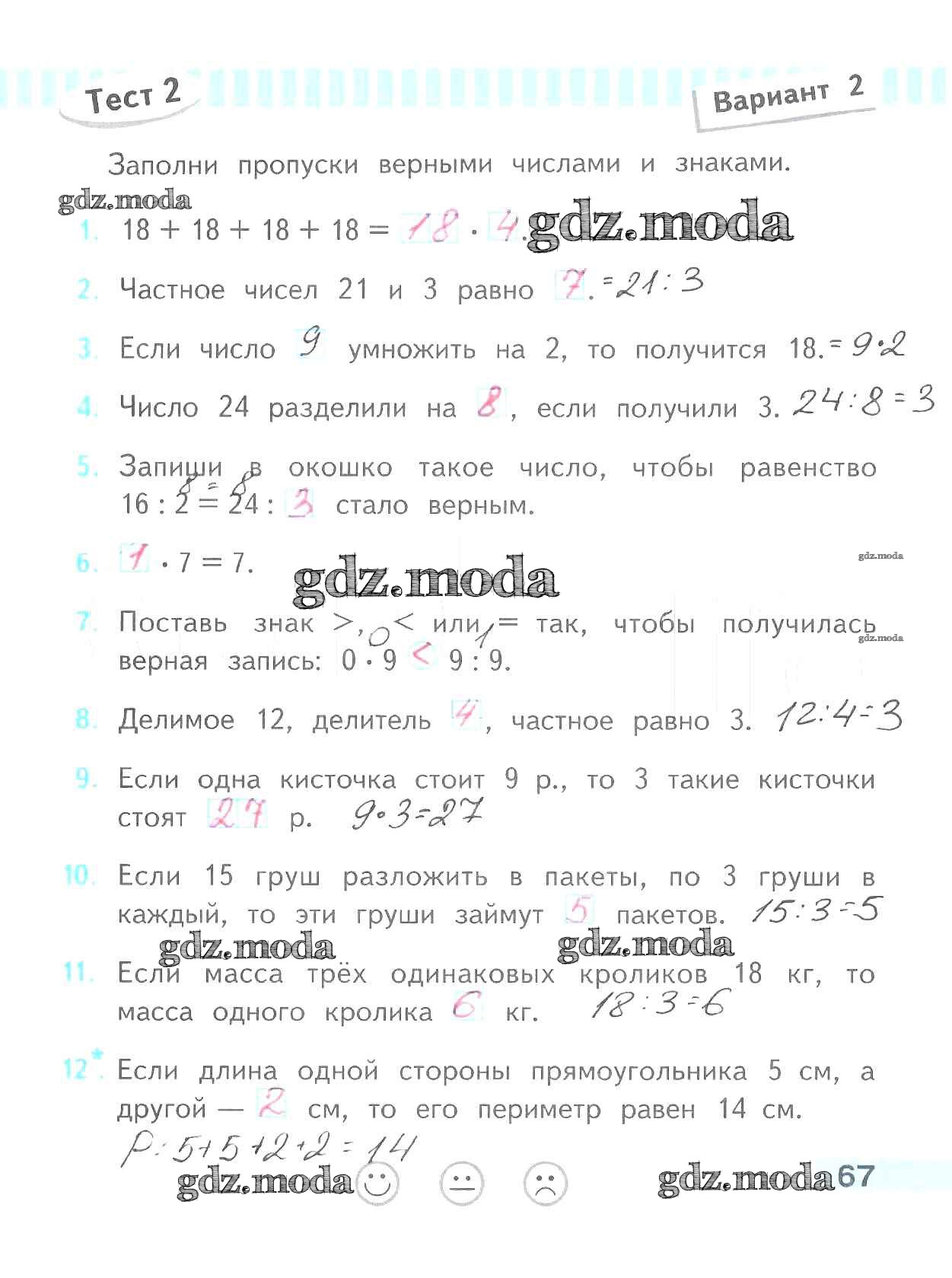 ОТВЕТ на задание № 67 Проверочные работы по Математике 2 класс Волкова Школа России