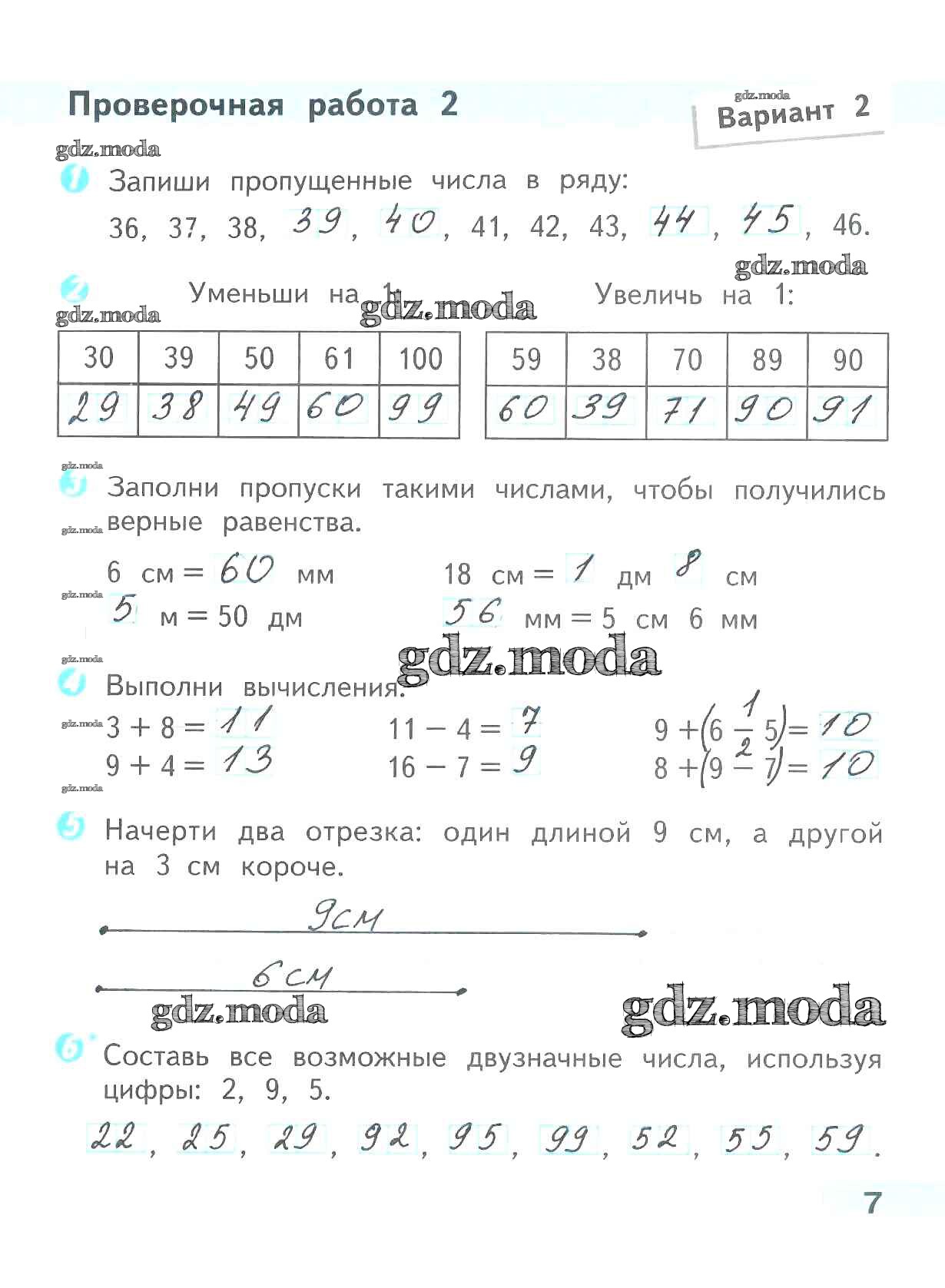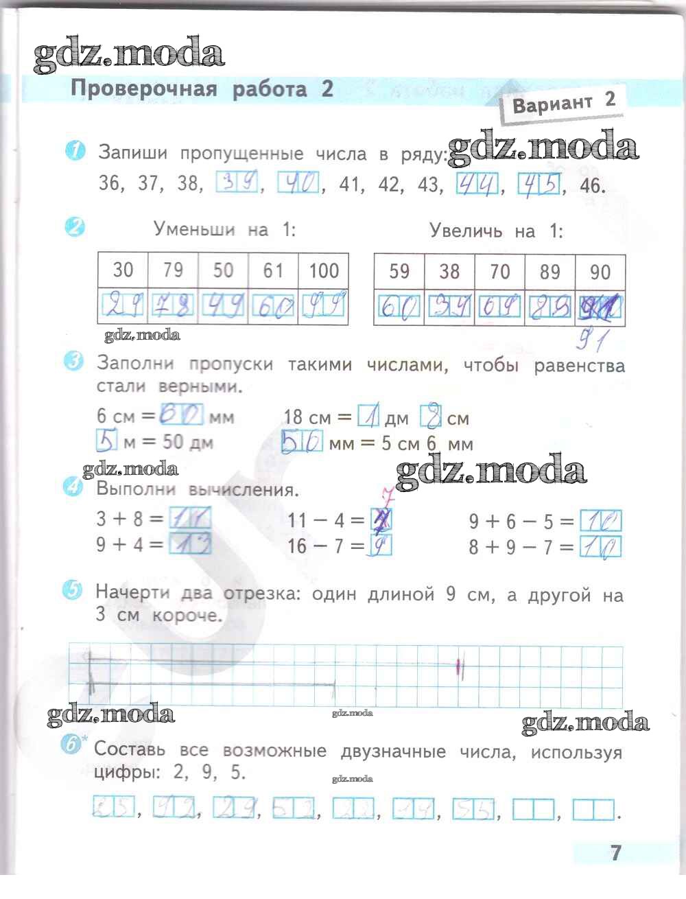 ОТВЕТ на задание № 7 Проверочные работы по Математике 2 класс Волкова Школа России