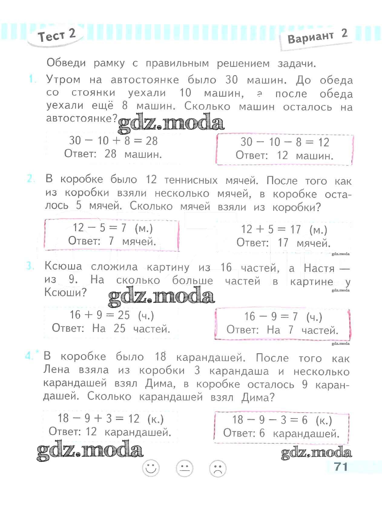 ОТВЕТ на задание № 71 Проверочные работы по Математике 2 класс Волкова Школа России