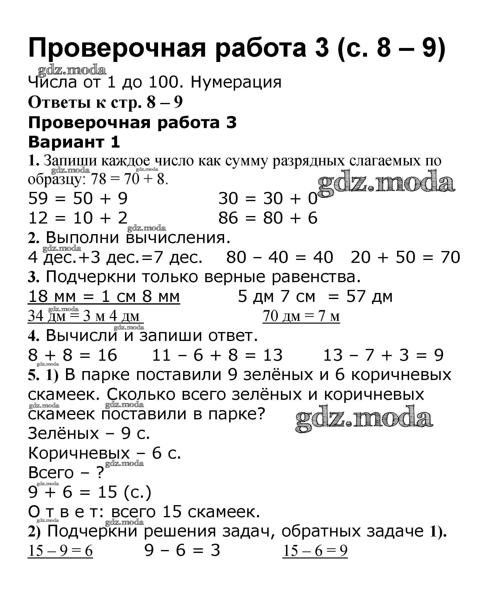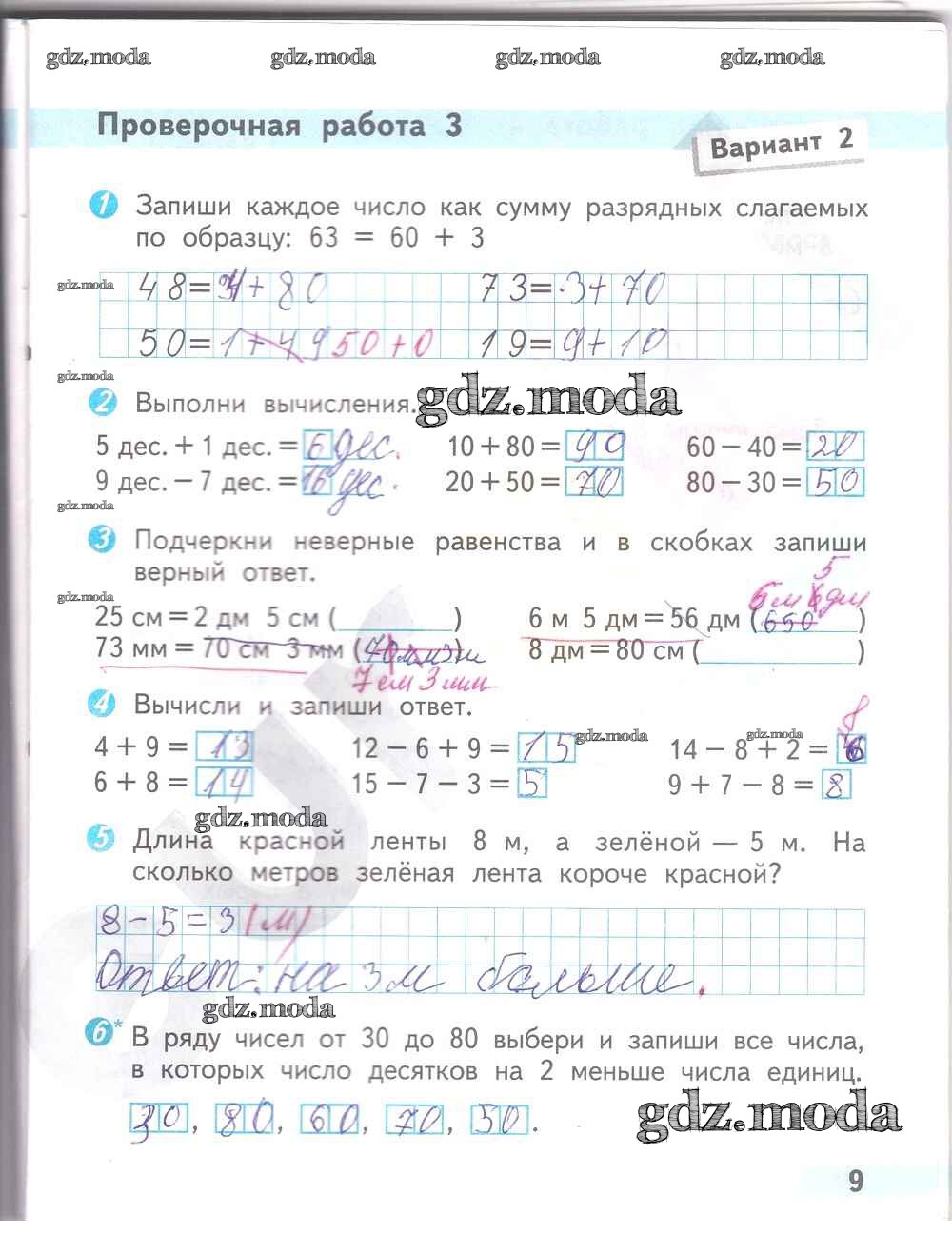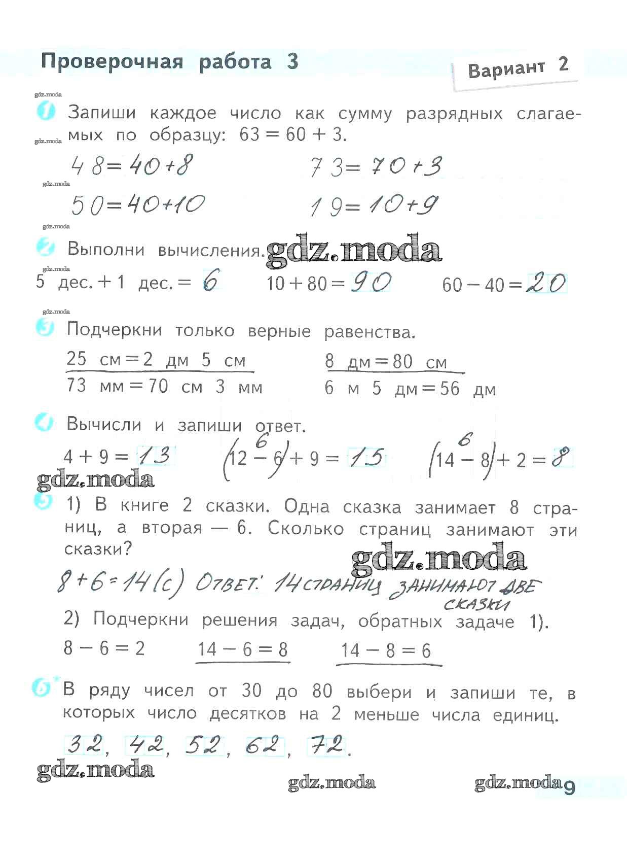 ОТВЕТ на задание № 9 Проверочные работы по Математике 2 класс Волкова Школа России