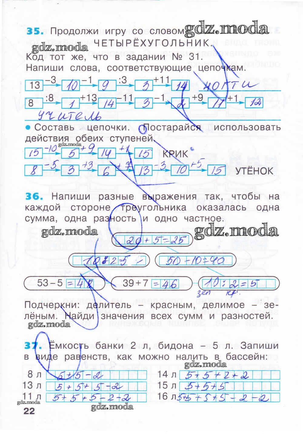 ОТВЕТ на задание № 22 Рабочая тетрадь по Математике 2 класс Бененсон