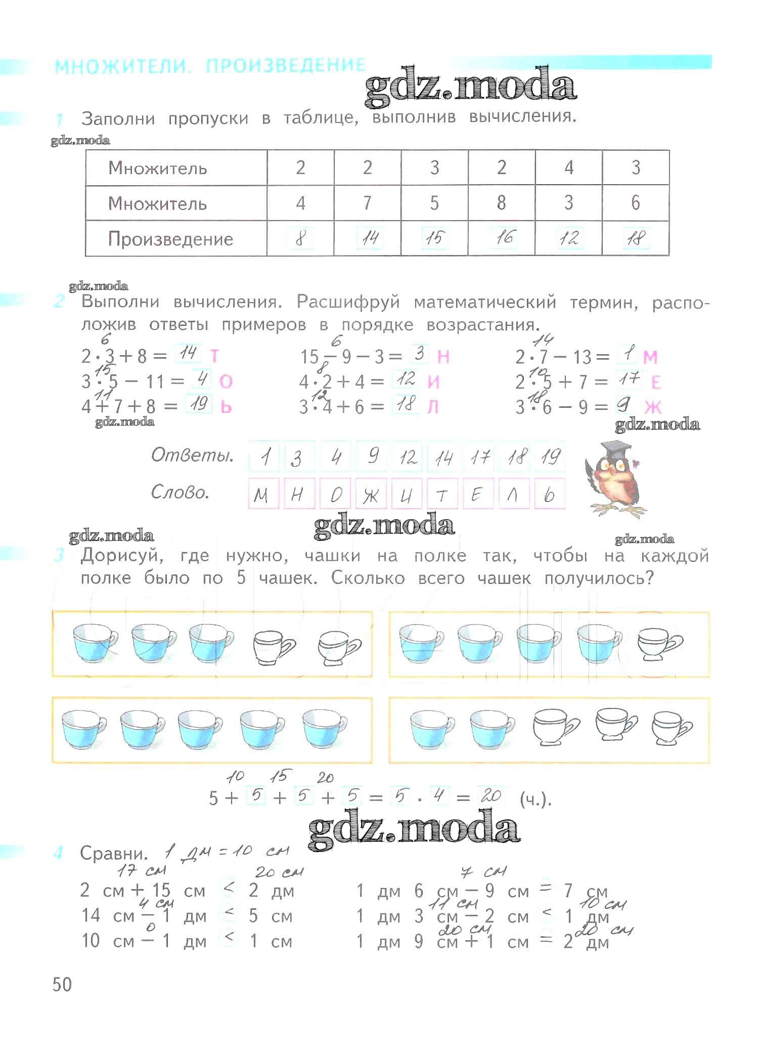 ОТВЕТ на задание № 50 Рабочая тетрадь по Математике 2 класс Дорофеев Перспектива