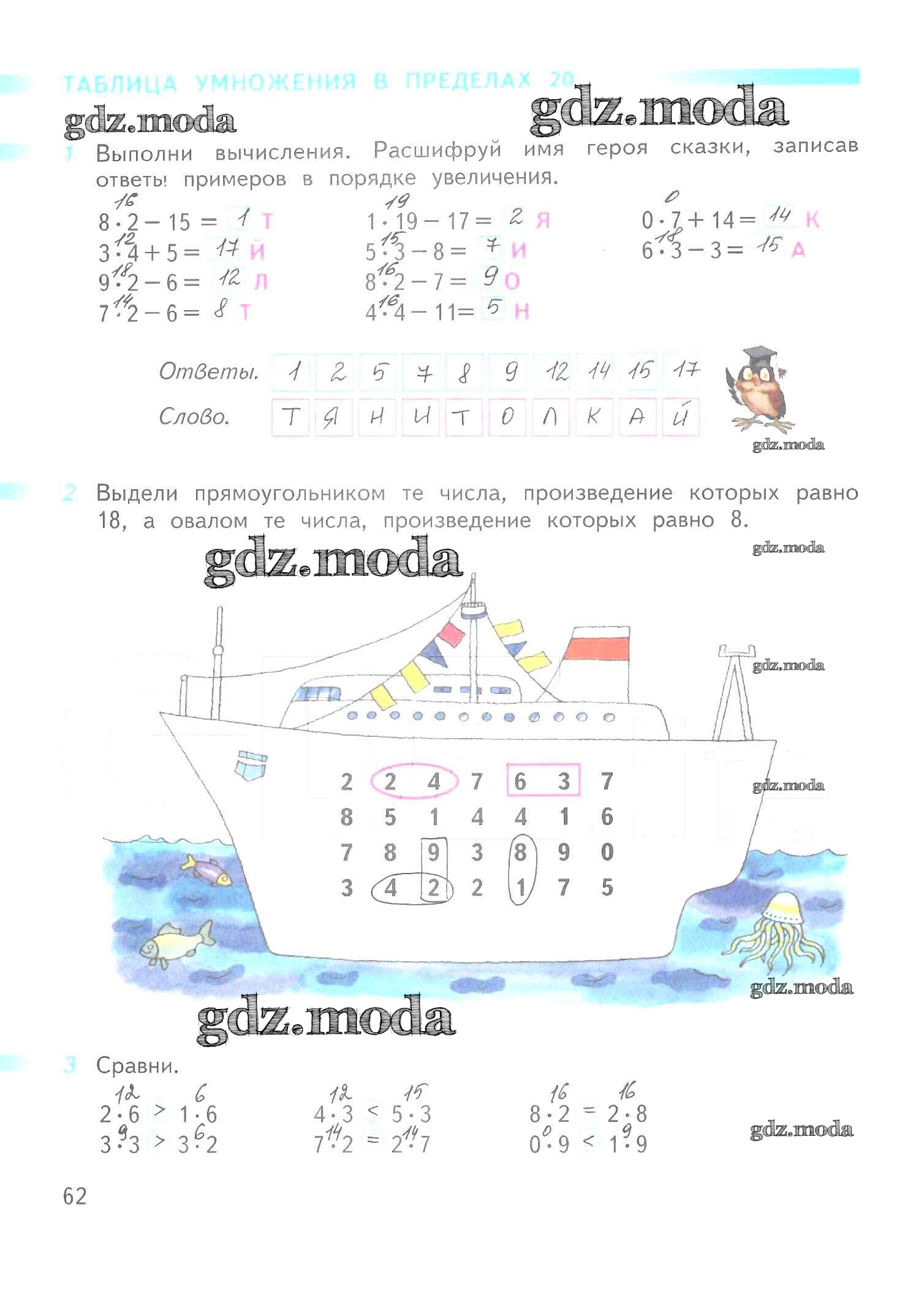 ОТВЕТ на задание № 62 Рабочая тетрадь по Математике 2 класс Дорофеев Перспектива