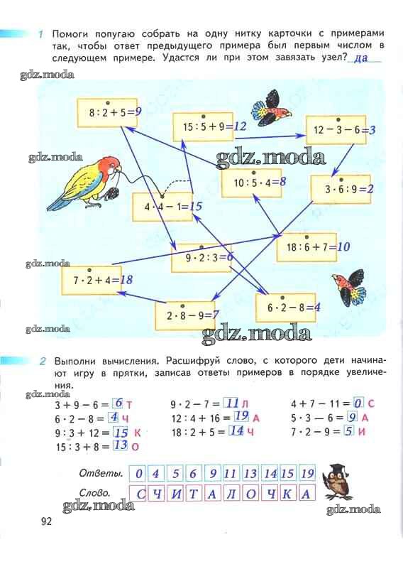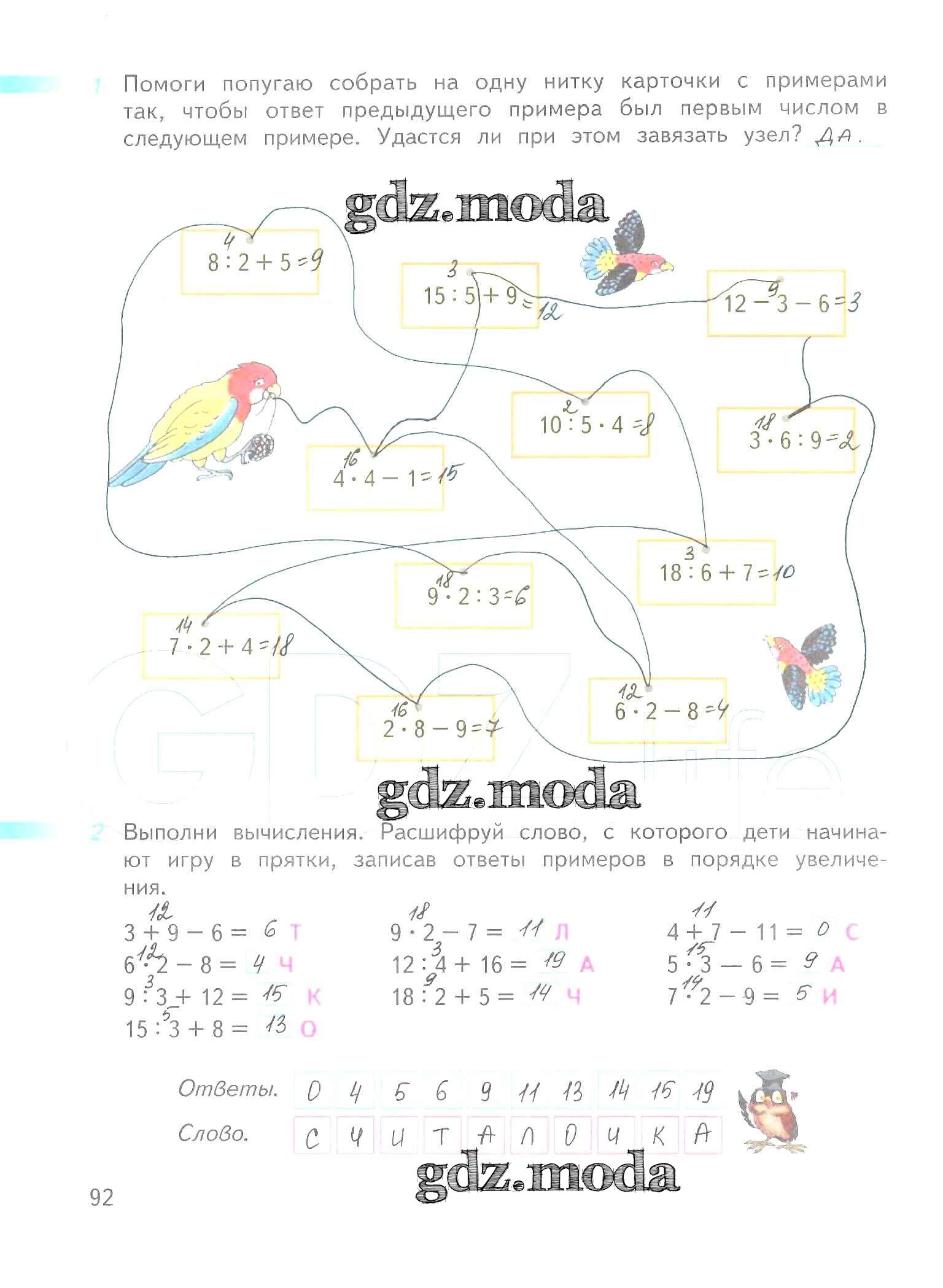 ОТВЕТ на задание № 92 Рабочая тетрадь по Математике 2 класс Дорофеев Перспектива