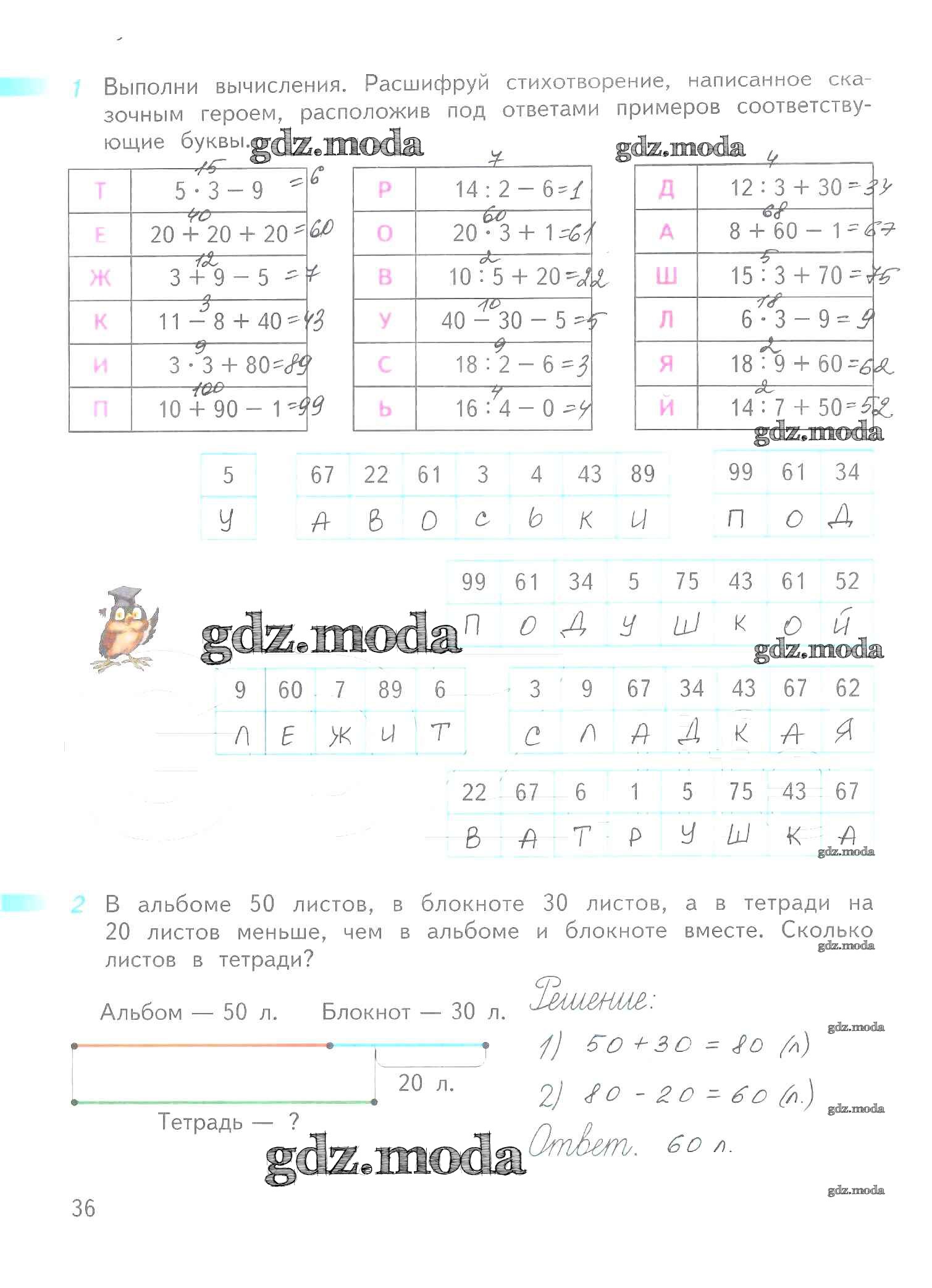 ОТВЕТ на задание № 36 Рабочая тетрадь по Математике 2 класс Дорофеев Перспектива