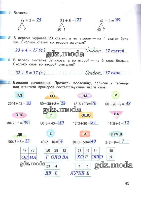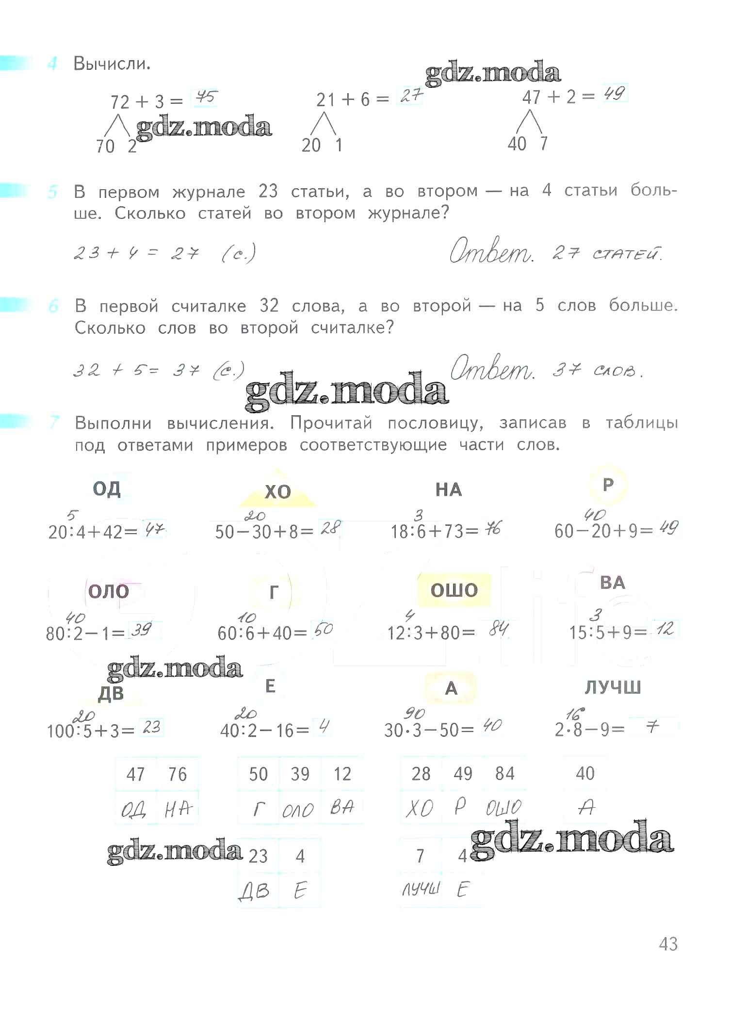 ОТВЕТ на задание № 43 Рабочая тетрадь по Математике 2 класс Дорофеев Перспектива