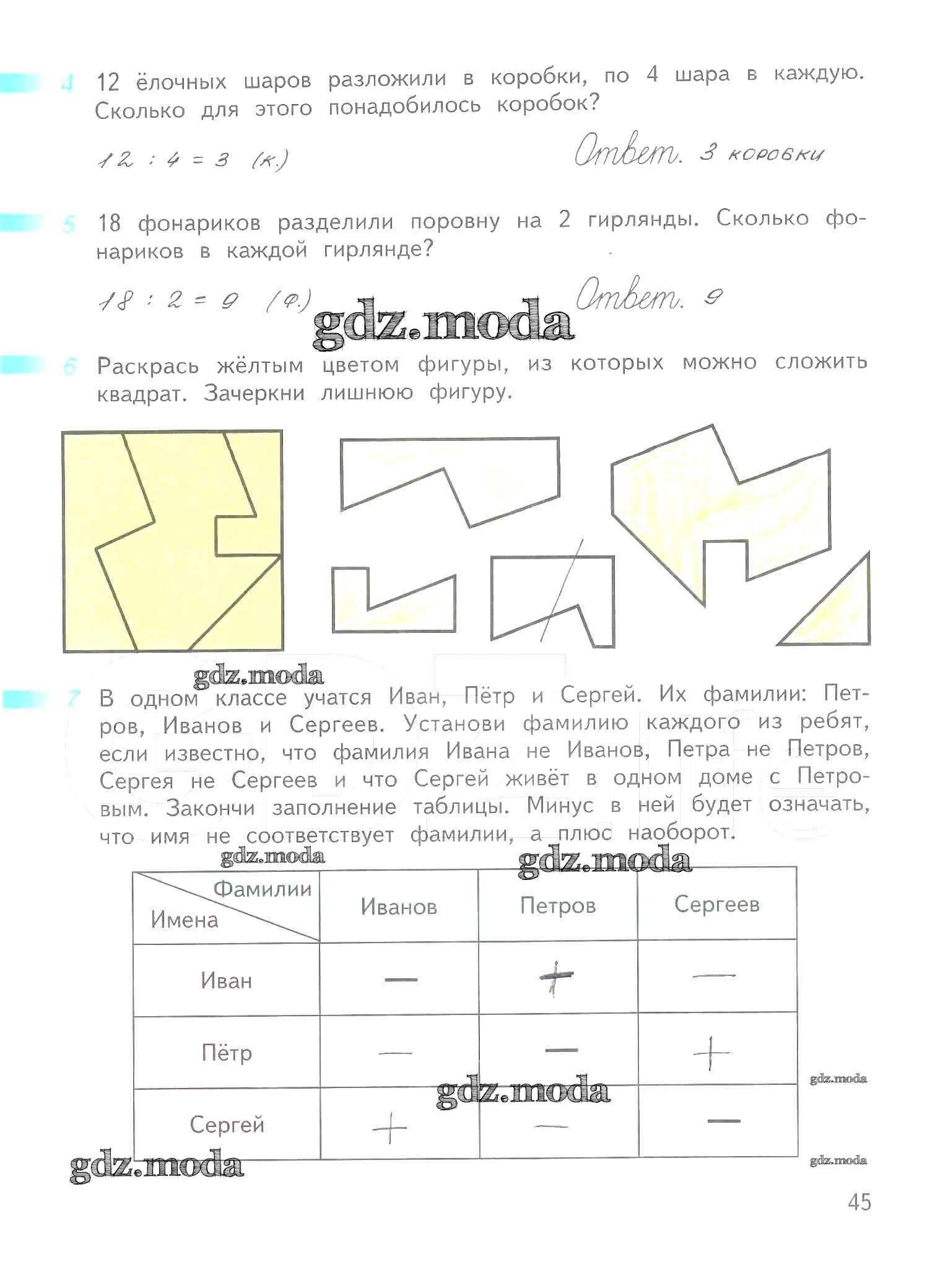ОТВЕТ на задание № 45 Рабочая тетрадь по Математике 2 класс Дорофеев Перспектива