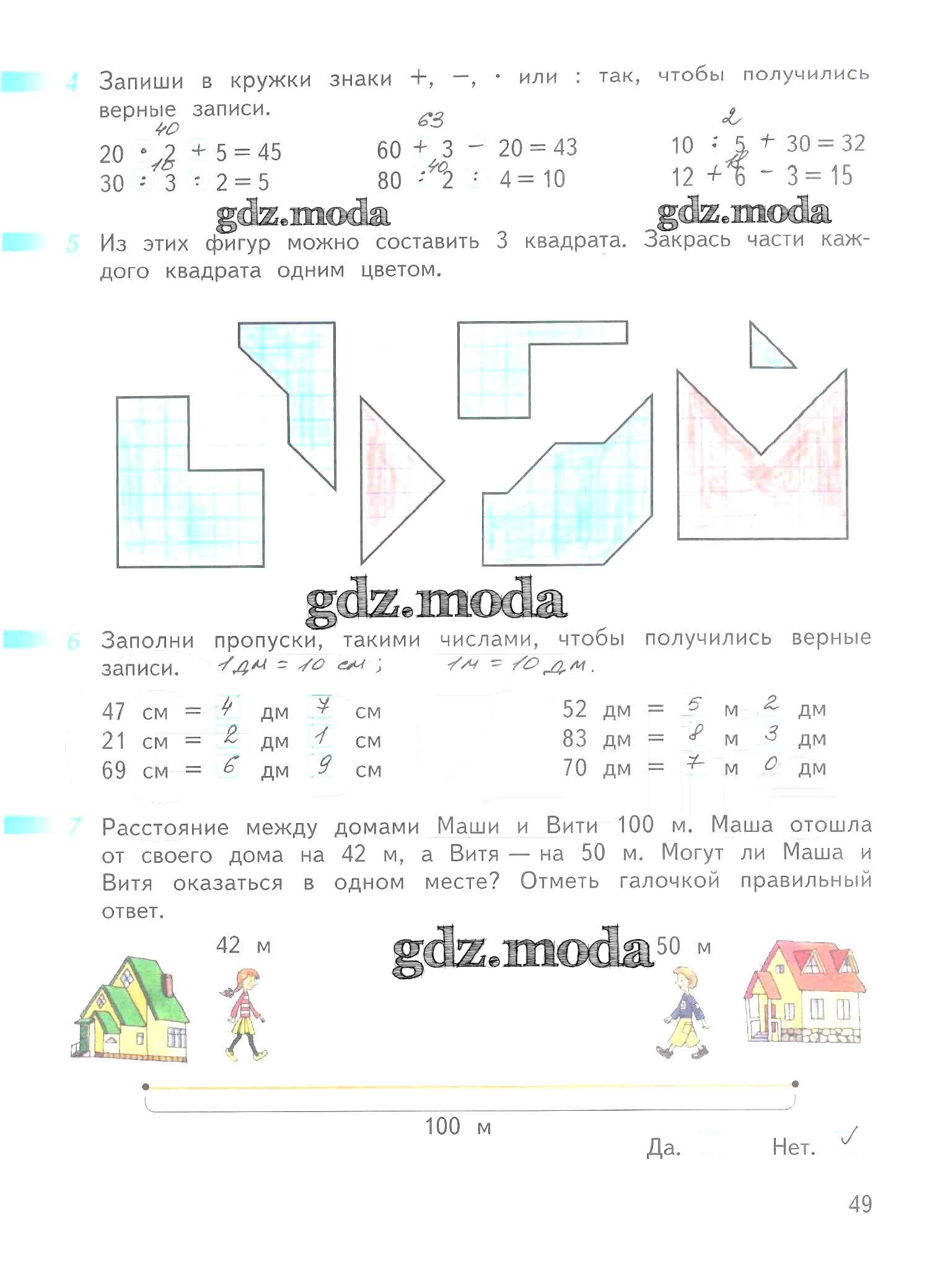 ОТВЕТ на задание № 49 Рабочая тетрадь по Математике 2 класс Дорофеев Перспектива