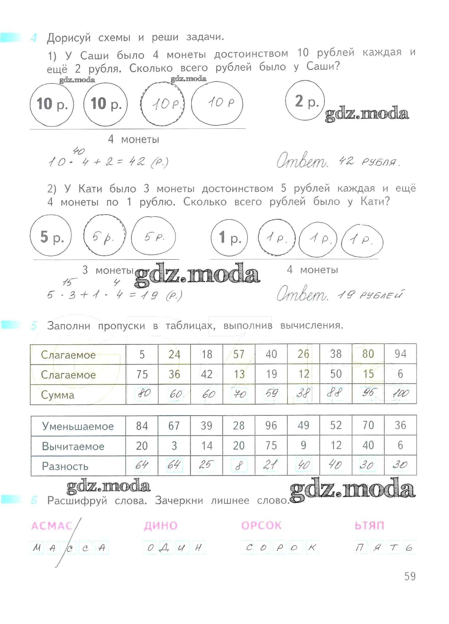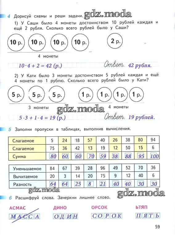 ОТВЕТ на задание № 59 Рабочая тетрадь по Математике 2 класс Дорофеев Перспектива